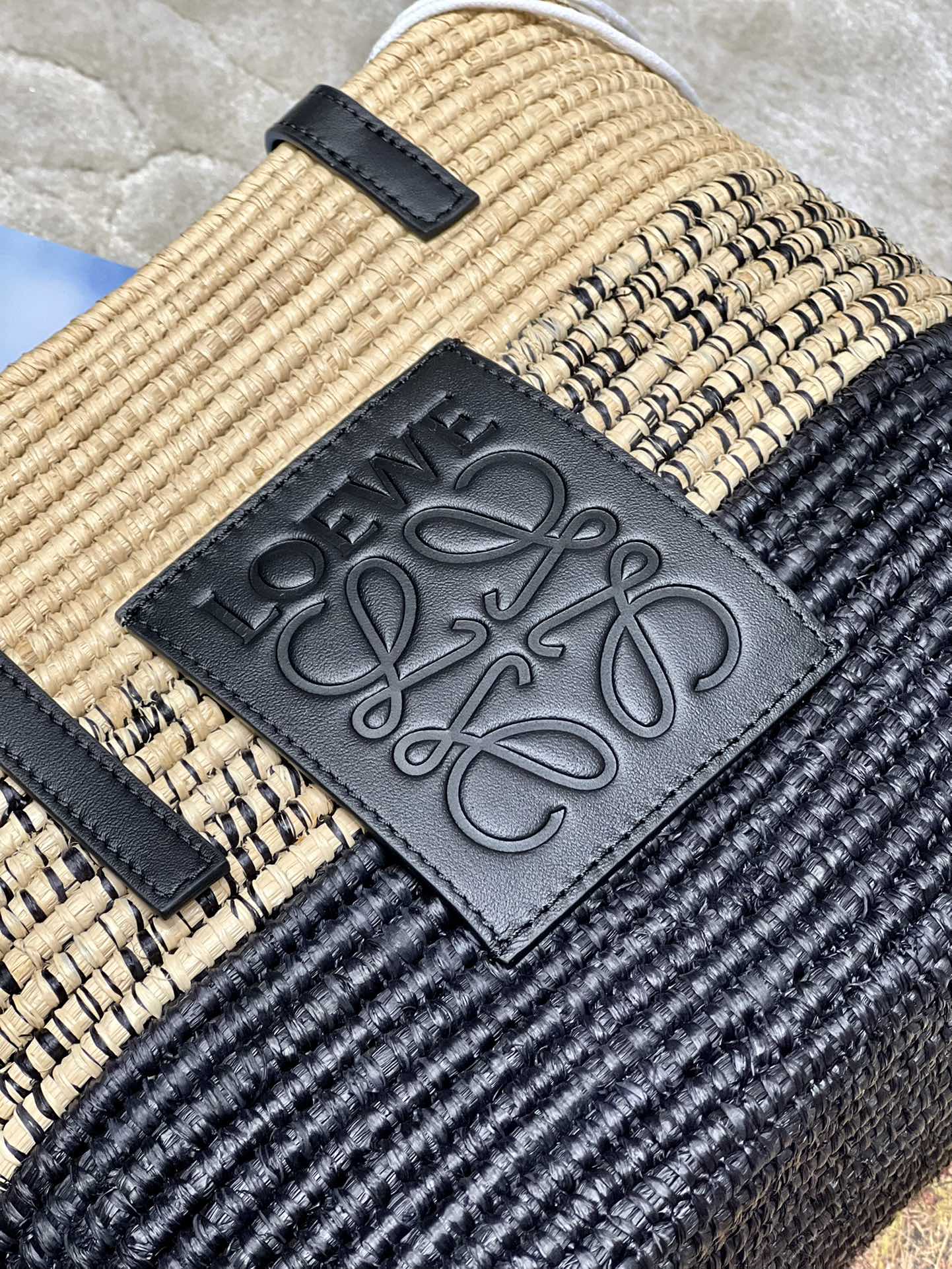 LOE BASKET BAG 28 IN NATURAL MIX BLACK RAFFIA
