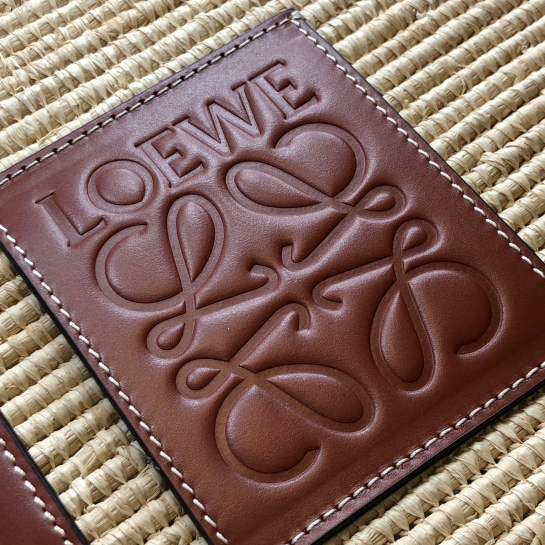 LOE SQUARE BASKET BAG 28 IN NATURAL RAFFIA AND CHOCOLATE BROWN CALFSKIN