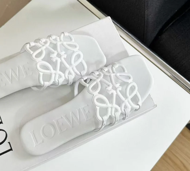 Loew Petal Anagram Leather Slides White