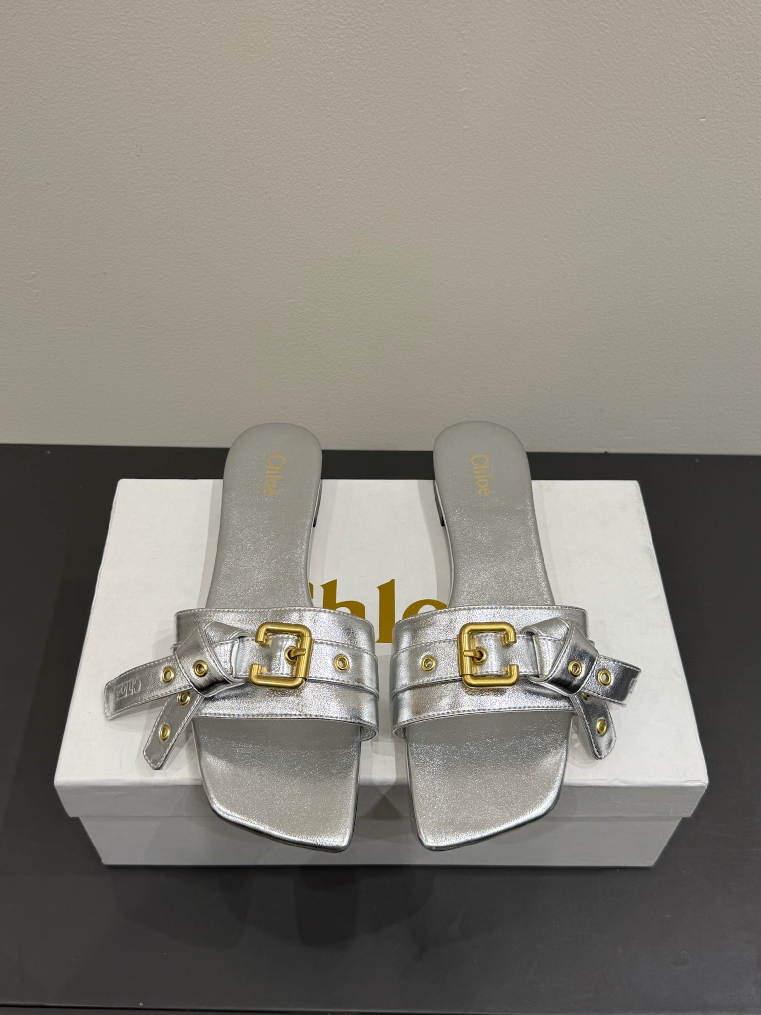 Loewe 25 Bow Metal Buckle Slide Sliver Cowhide