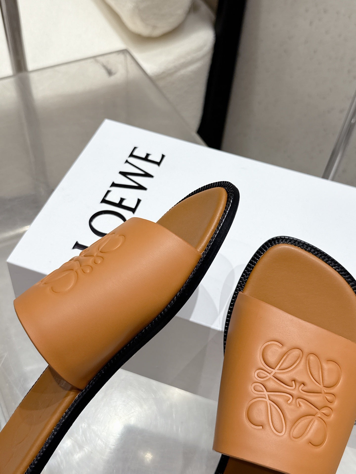 Loewe 25 flat slippers camel calfskin
