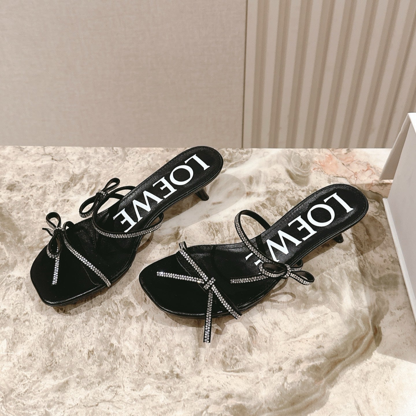 Loewe 25 Petal Bow Sandals Black Cowhide PVC