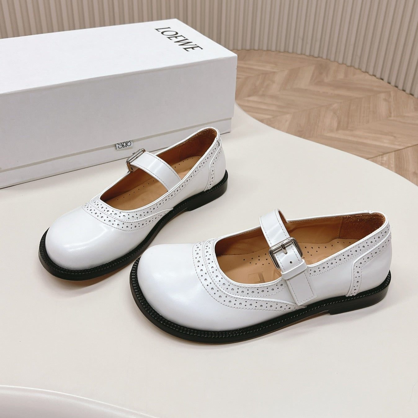 Loewe Campo Mary Jane Ballet Flat White Cowhide