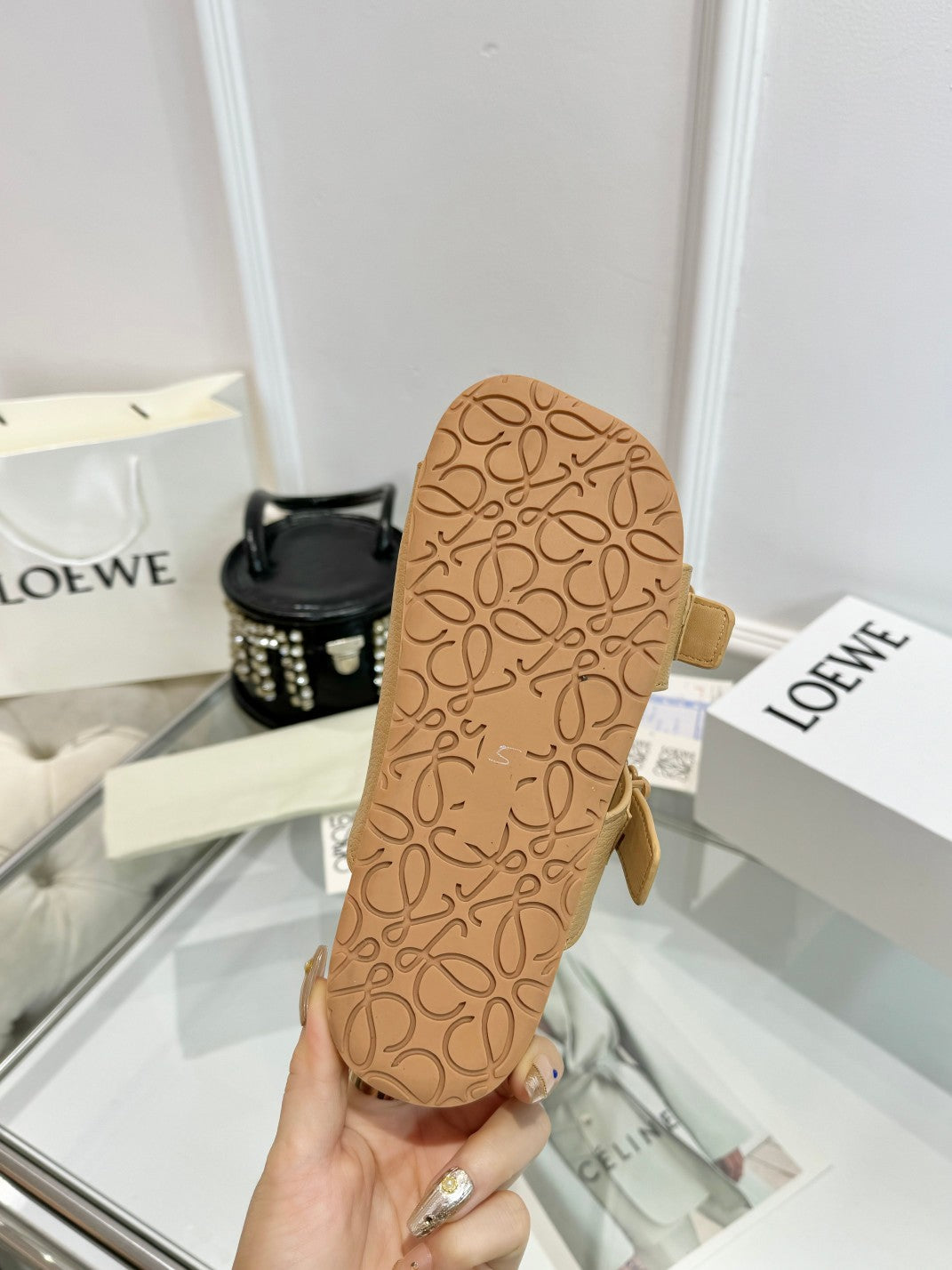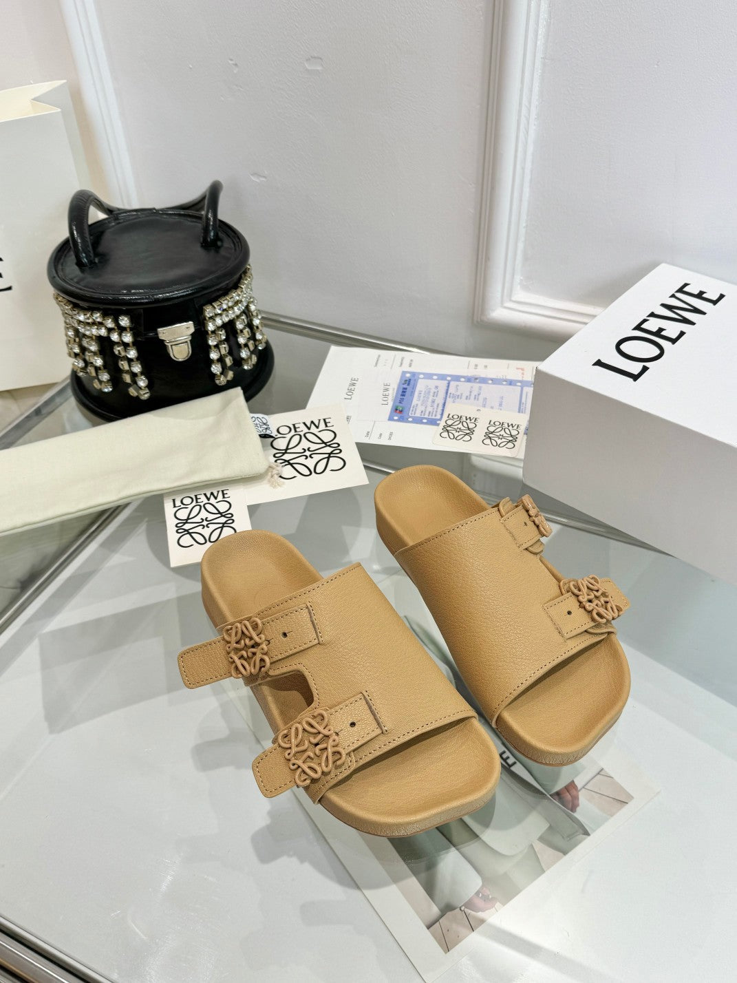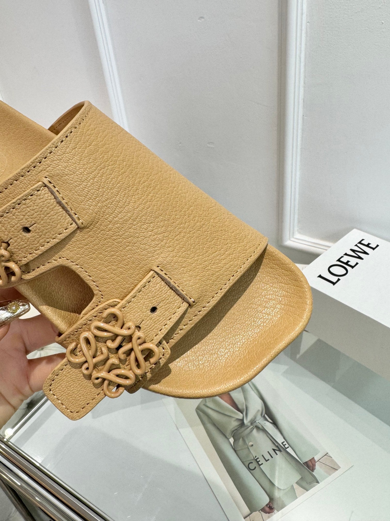 Loewe Ease Leather Slide Beige Sheepskin 246541