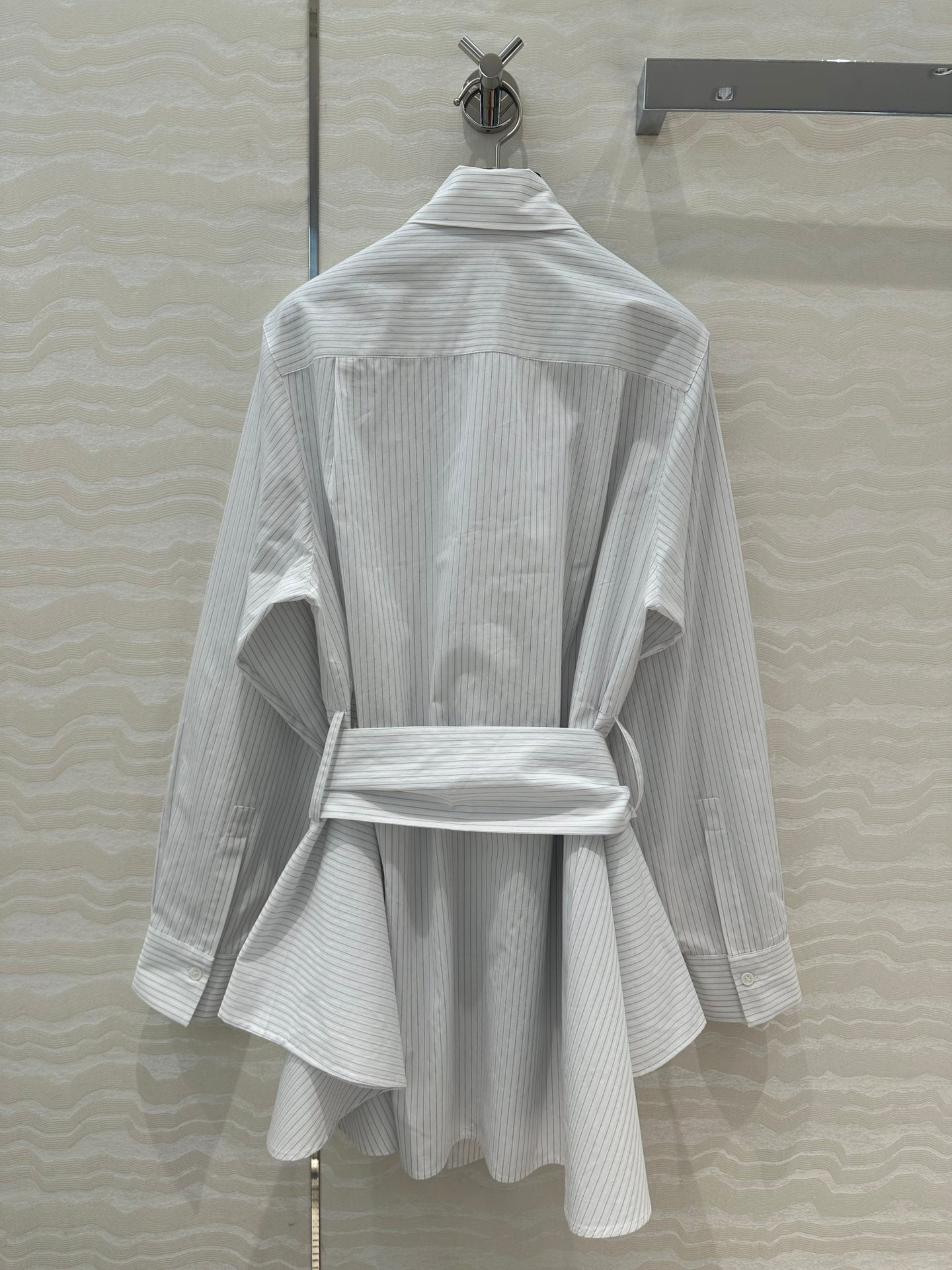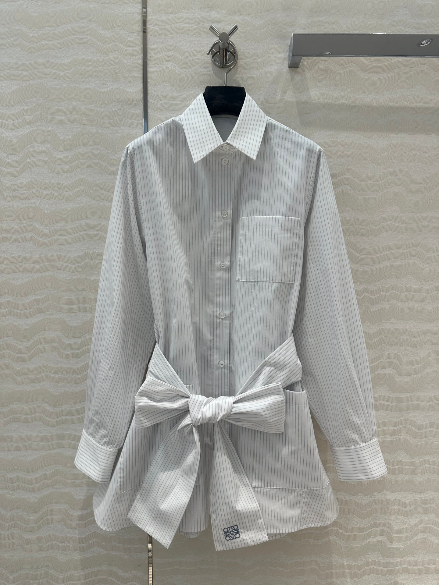 Loewe Pinstriped Shirt Dress White Cotton