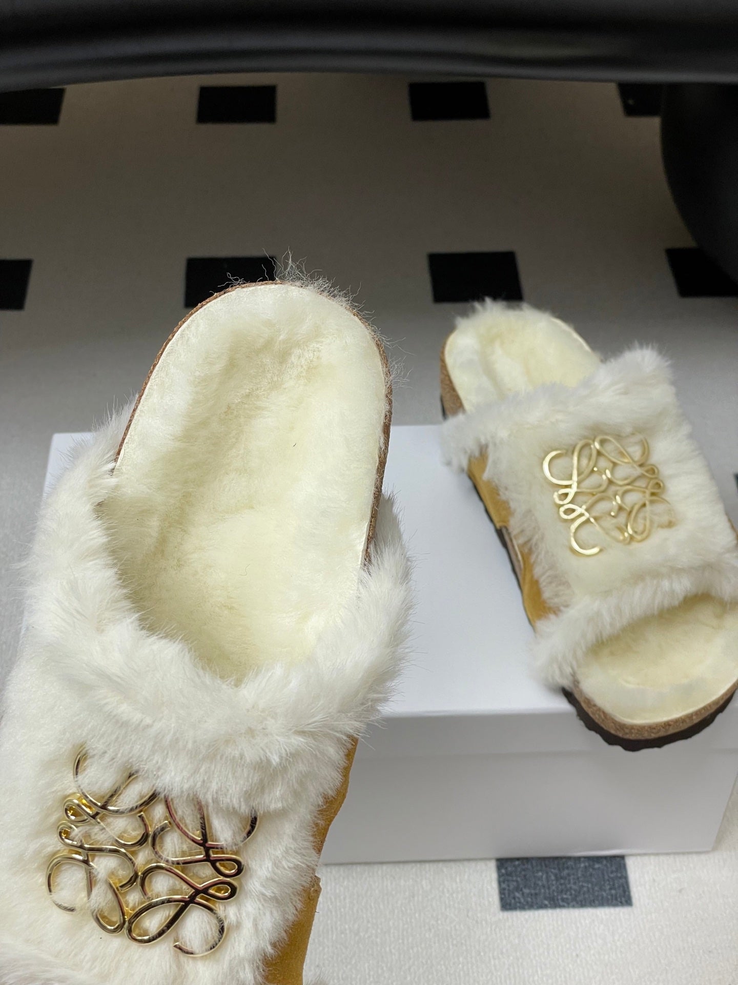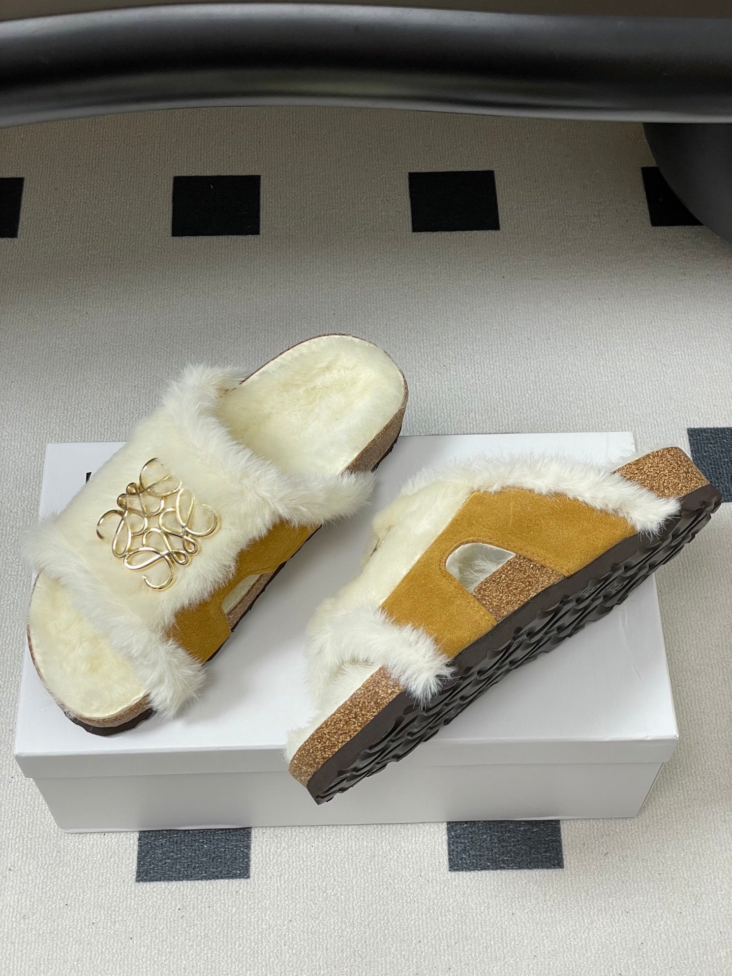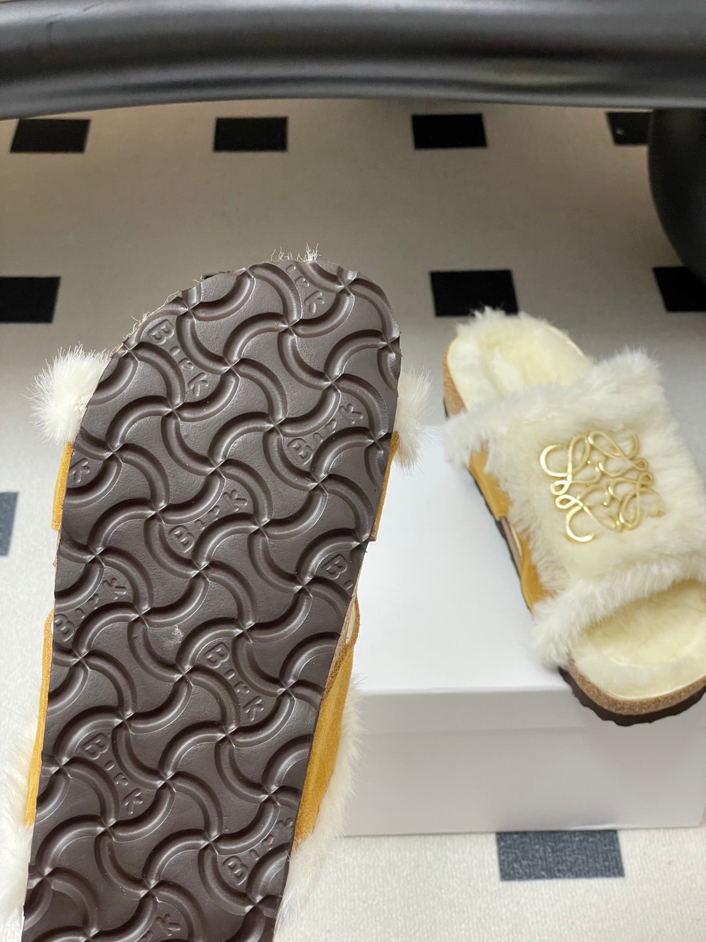 Loewe x Birkenstock slippers white tan further