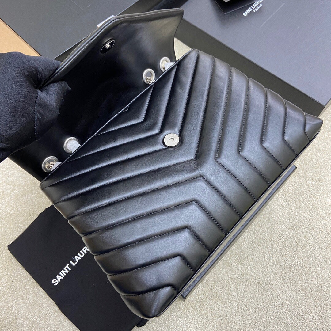 LOULOU MEDIUM 32 BLACK QUILTED LEATHER SILVER HARDWARE