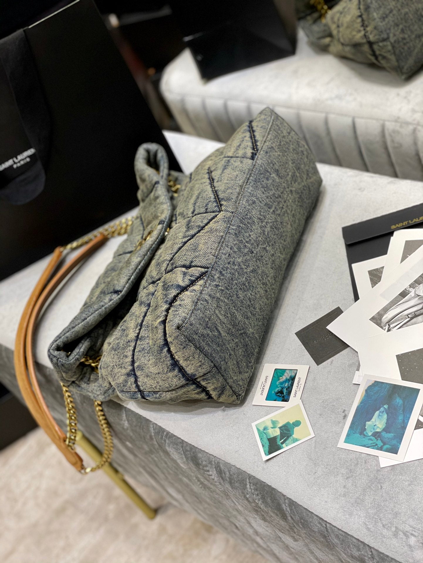 LOULOU PUFFER MEDIUM 35CM RODEO BLUE SUEDE DENIM