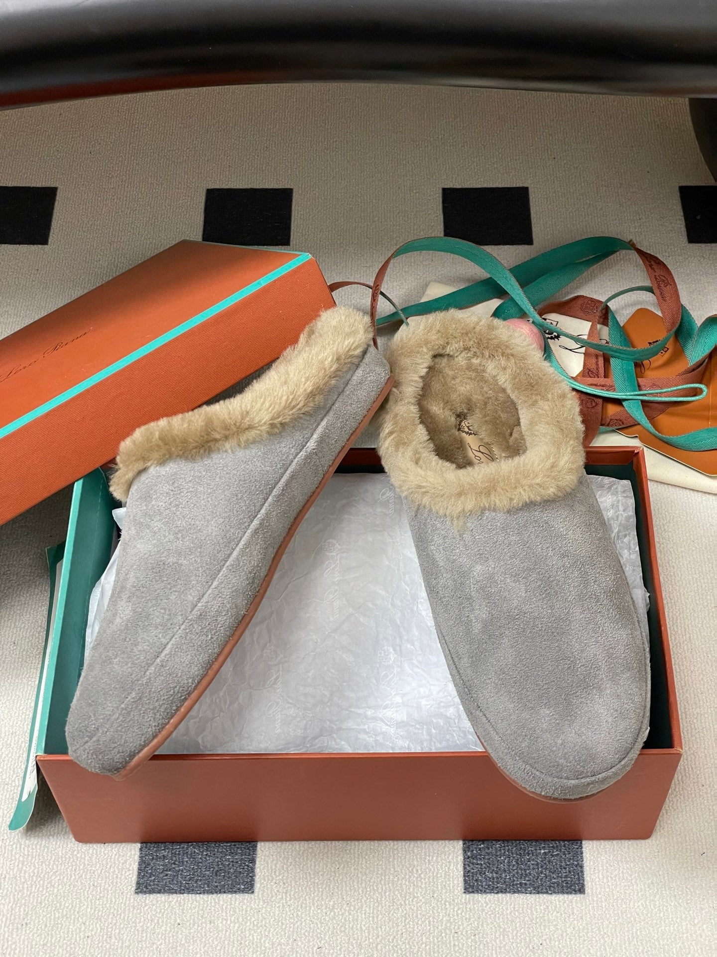 LP 25 Closed-Toe Half-Slippers Gray Beige Suede Fur 534683
