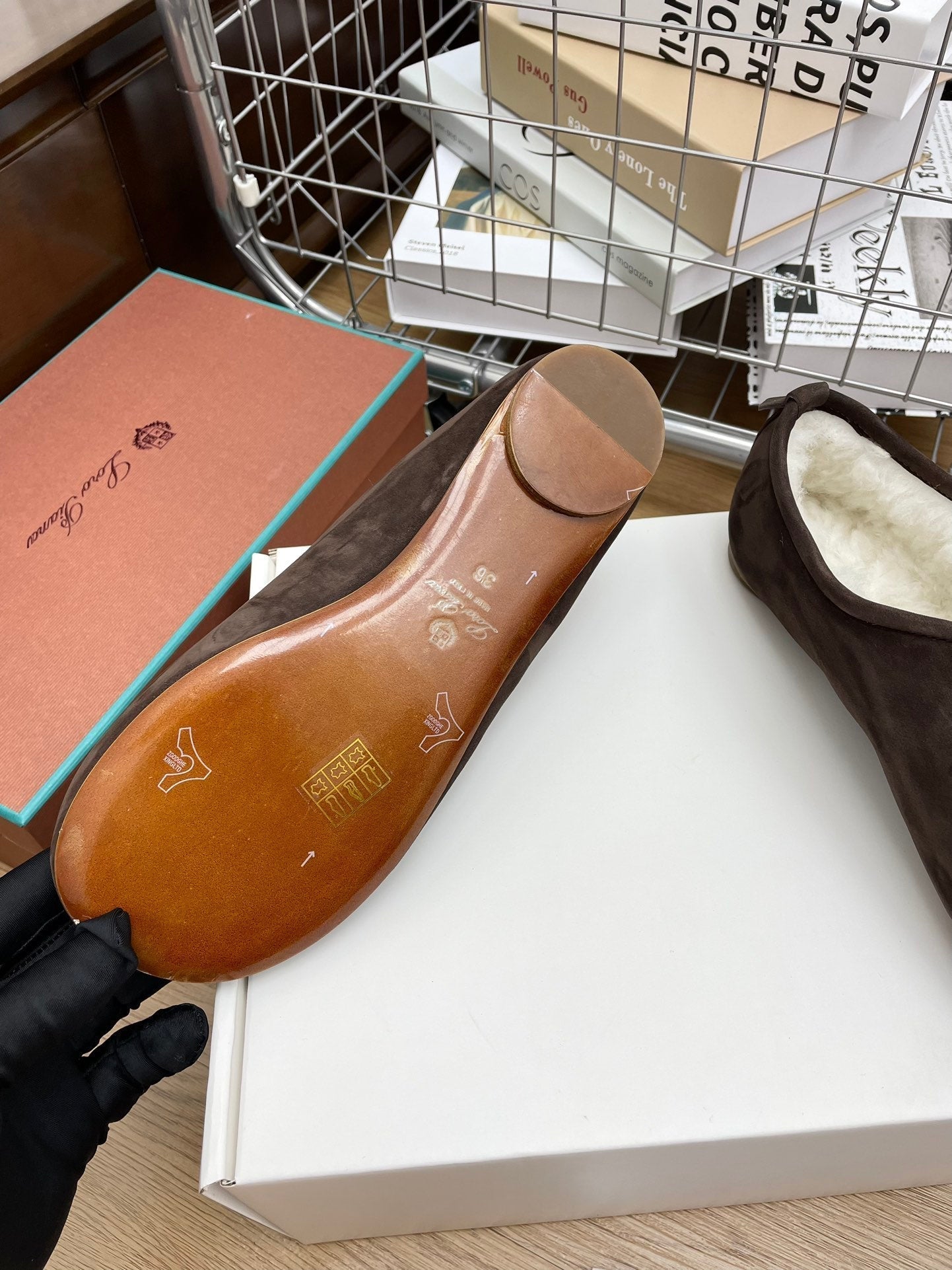 LP Cocooning Floaty Flat Earth Brown Wool Fleece Lining And Suede 989993
