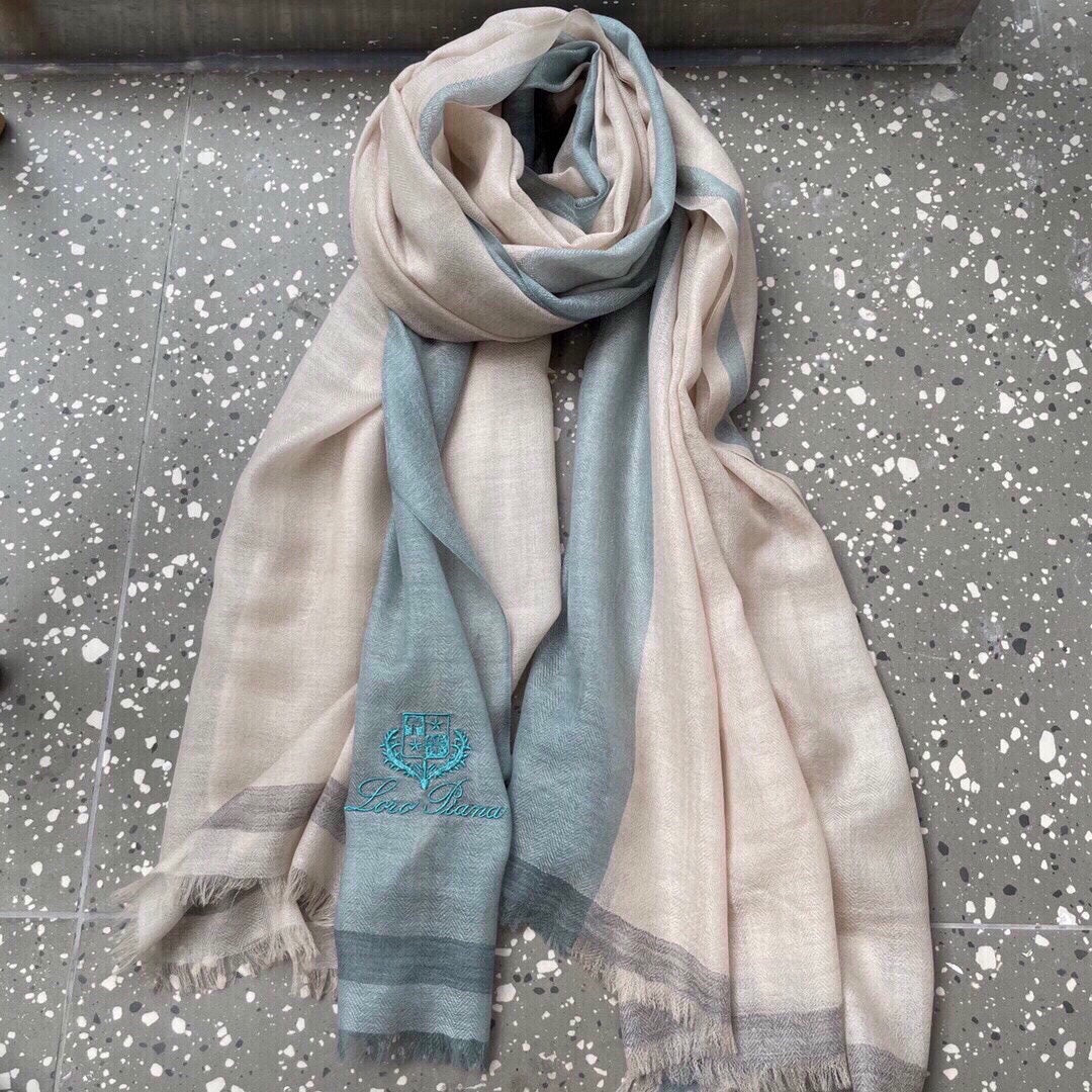 LP Quadrata Rainbow Scarf 200 CM In Beige Mix Turquoise Cashmere Silk 670020