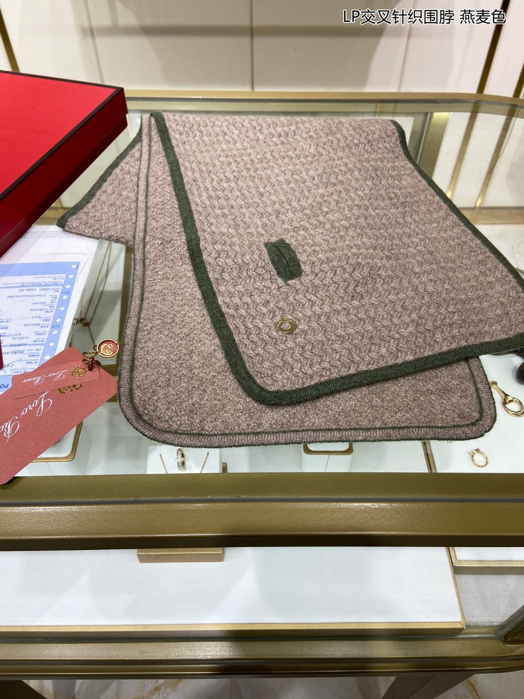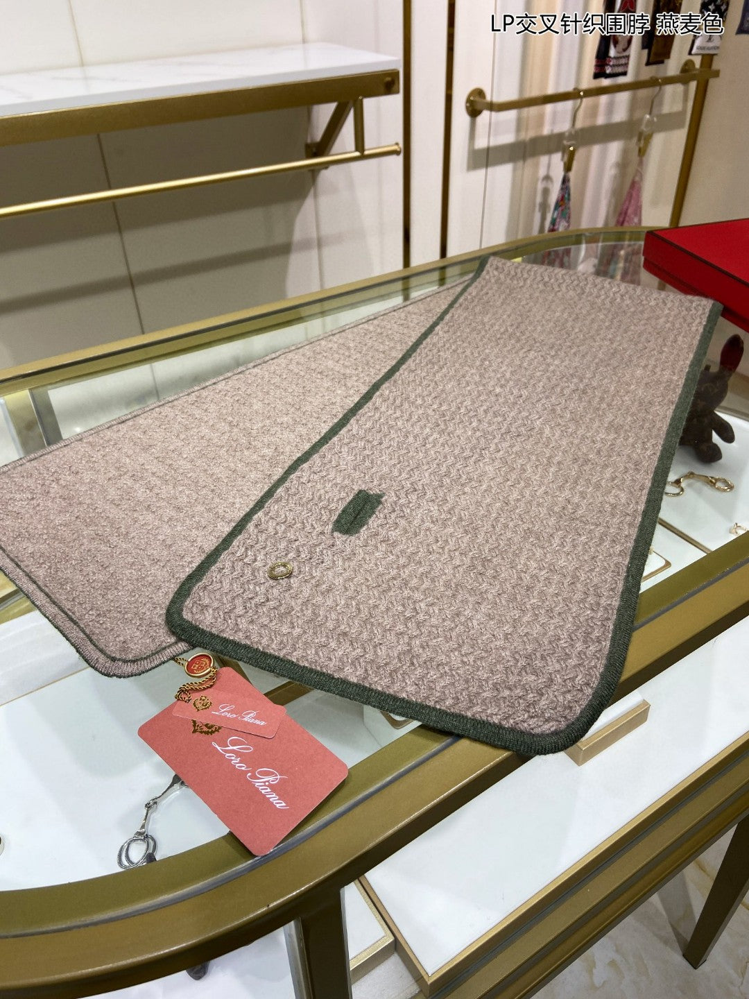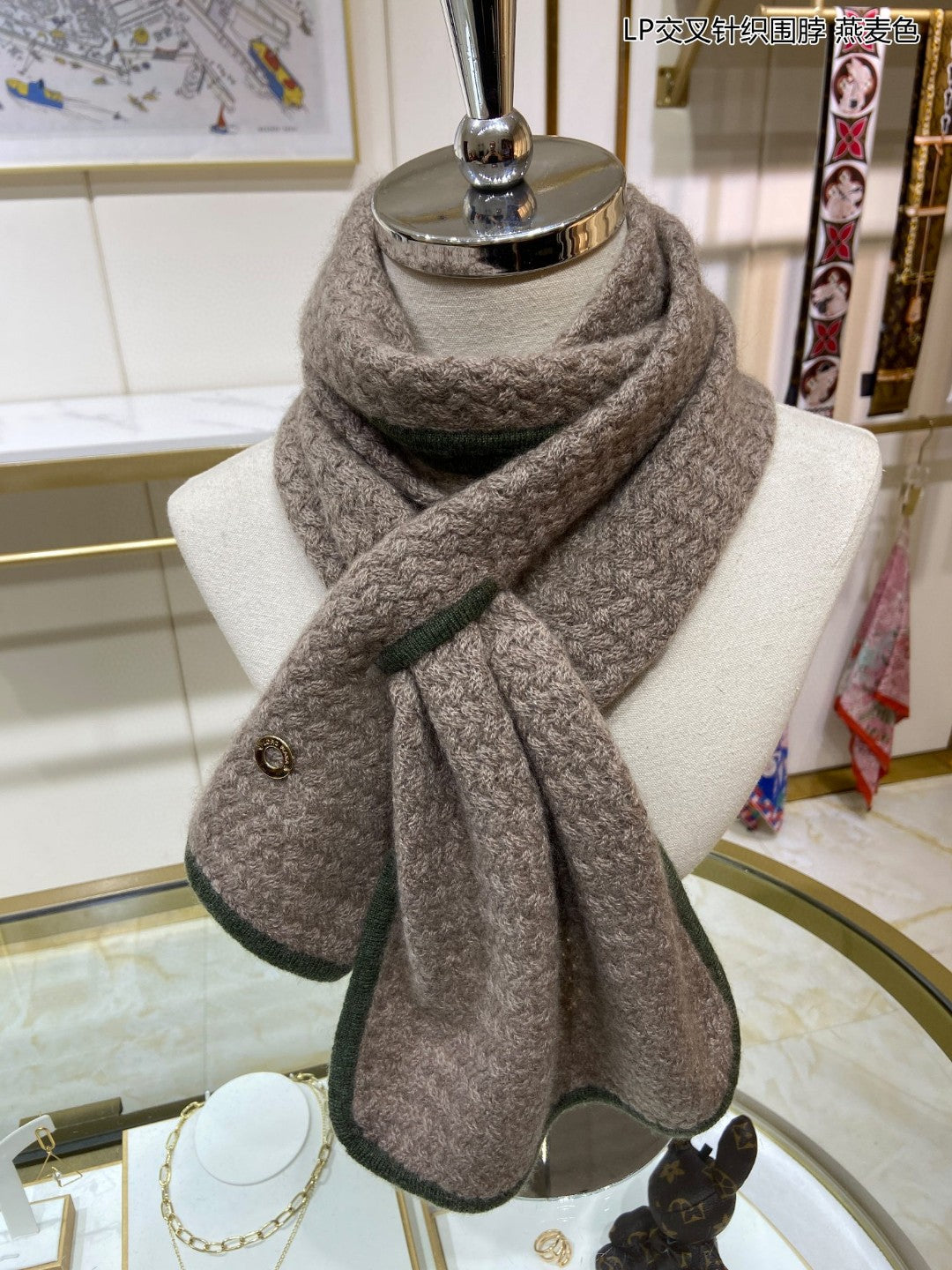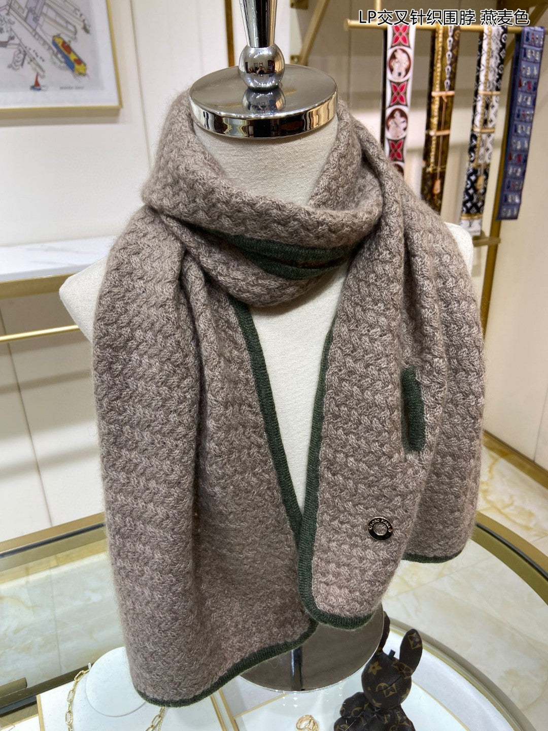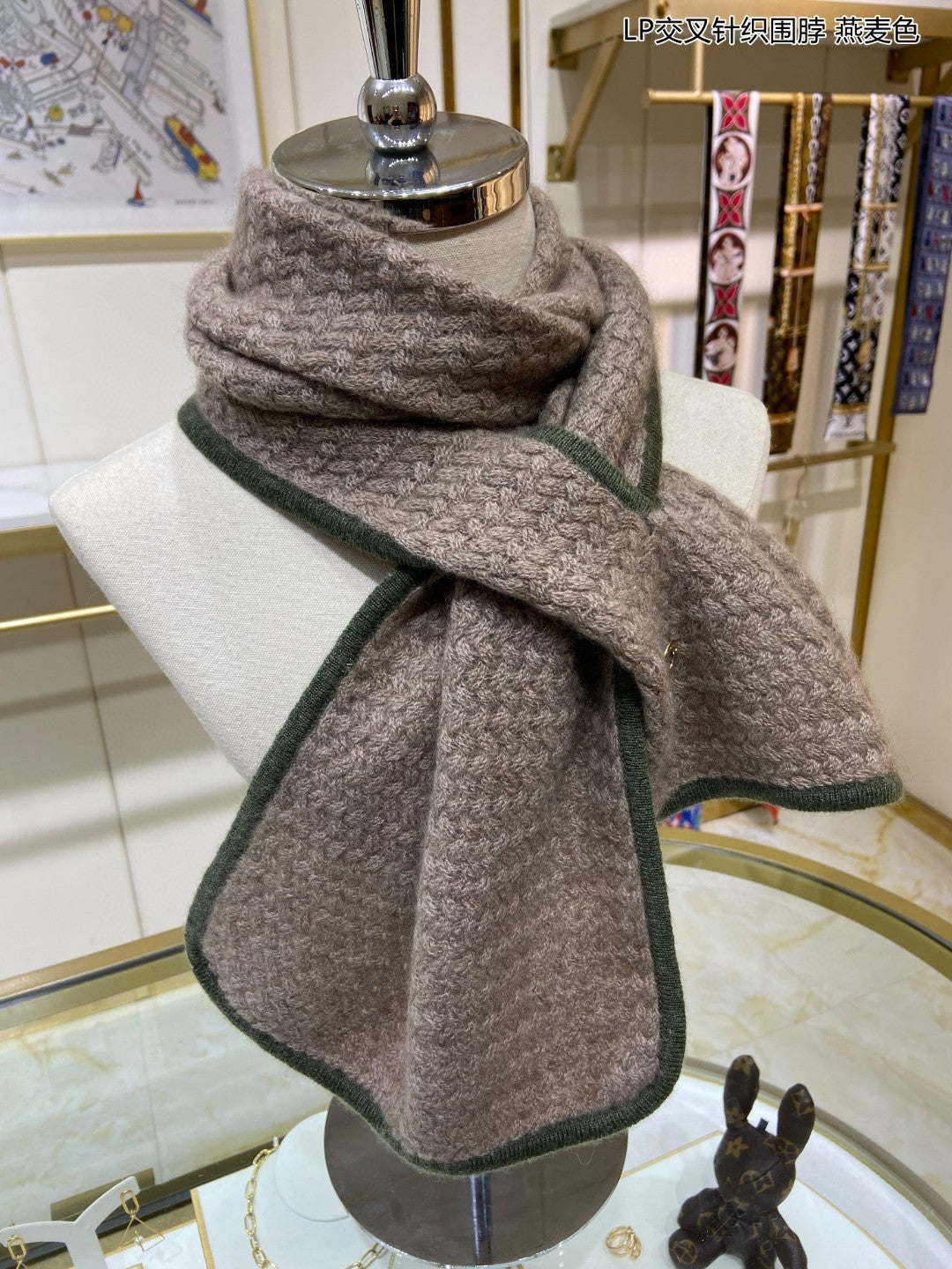 LP Scarf 125 CM In Earth Brown With Dark Green Border Cashmere 201758