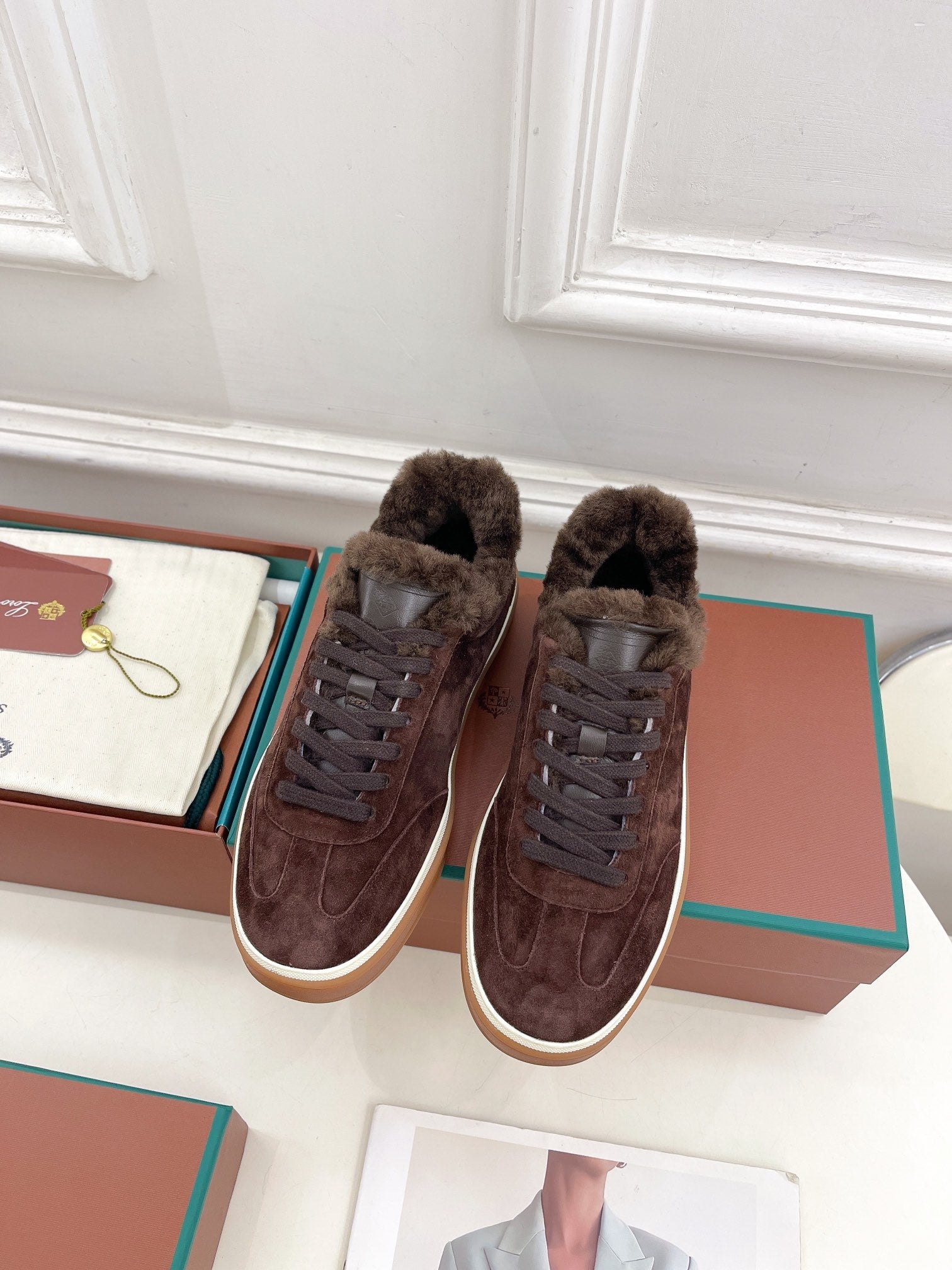 LP Tennis Walk Sneaker In Earth Brown Suede Lined With Wool Fleece 988266