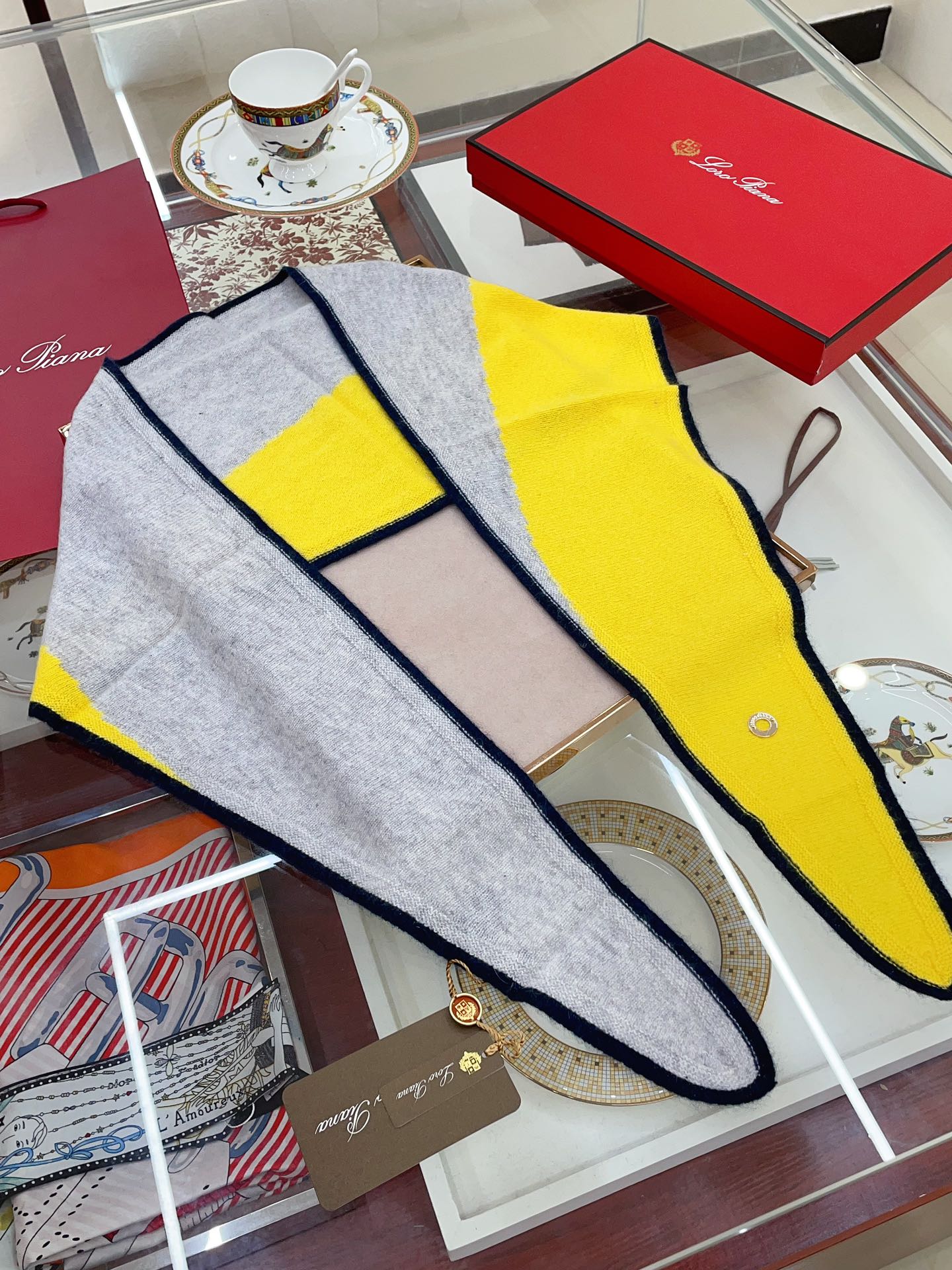 LP Yodo Scarf 150 CM In Grey Mix Yellow Cashmere 130489