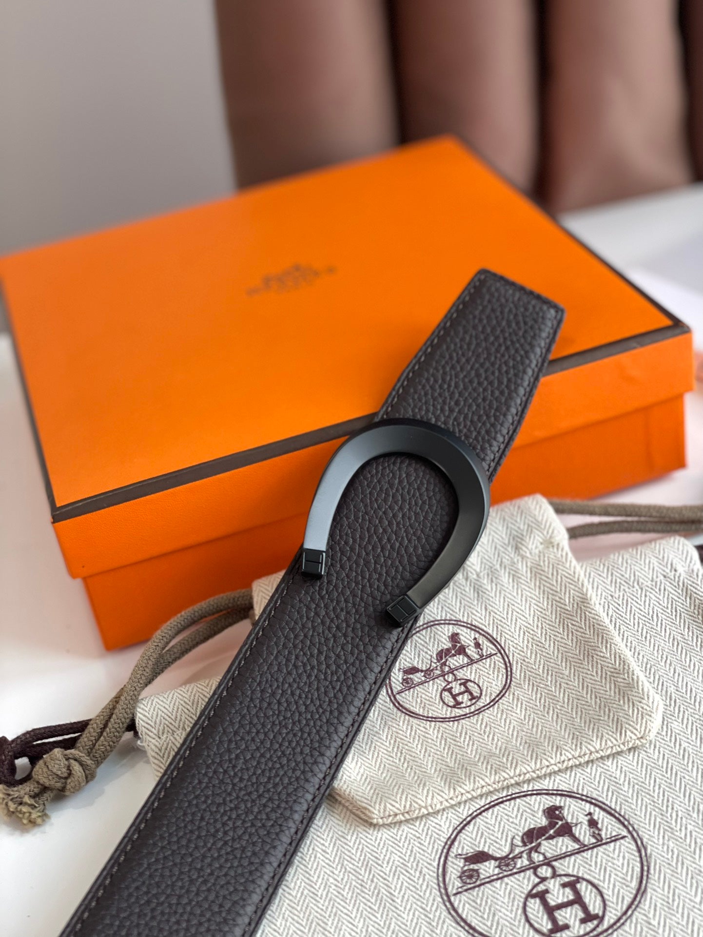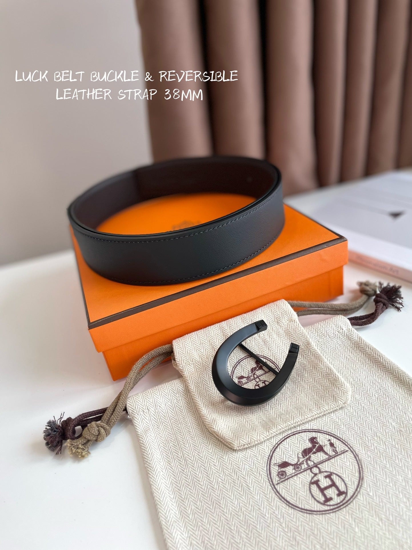 LUCK BELT BUCKLE & REVERSIBLE CHOCOLATE BROWN LEATHER STRAP 38MM BLACK HARDWARE
