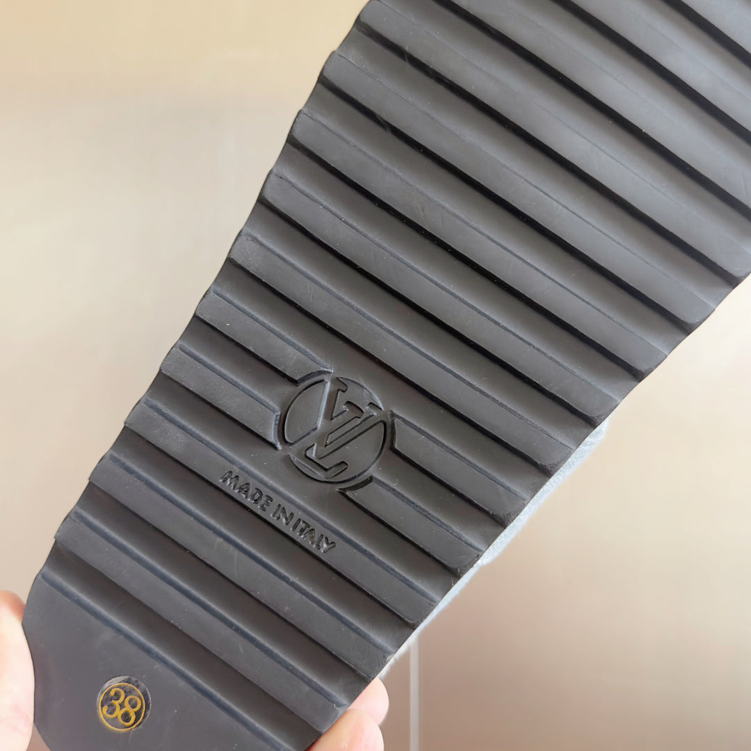 LV 25 Birkenstock Platform Slippers Light Gray Denim Wool 576221