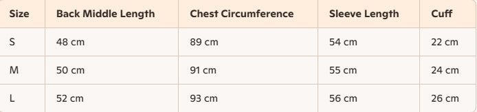 - Size : S, M, L