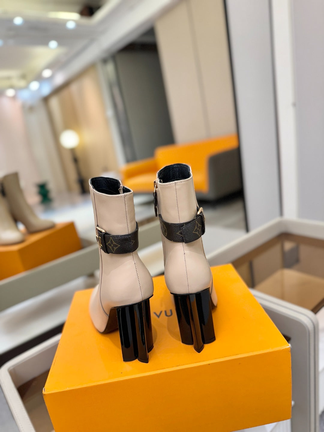 LV 25 Runway Ankle Boots 100 Beige Calfskin Mix Belt 573871