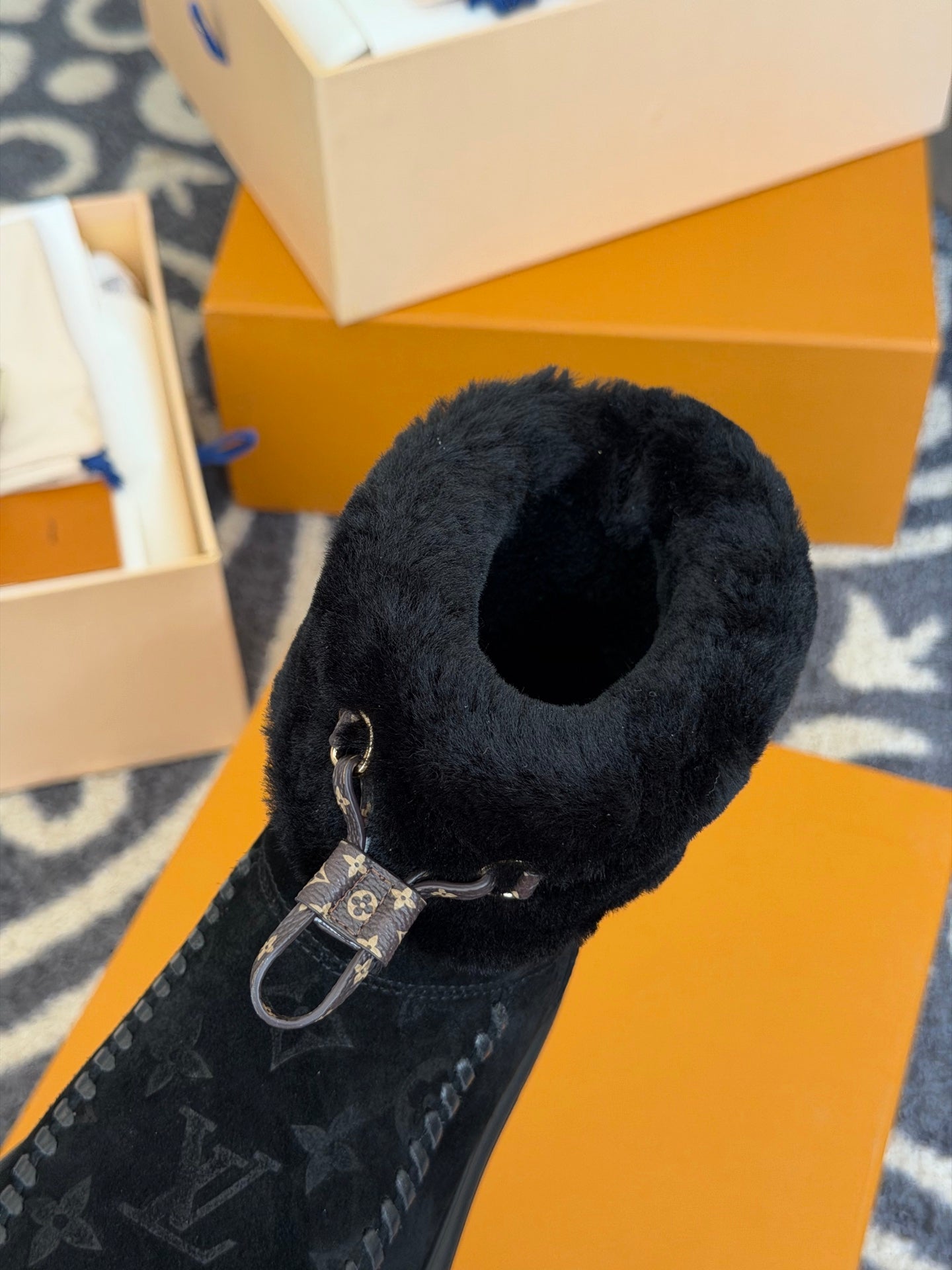 LV 25 Snow Boots Black Monogram Suede 576947