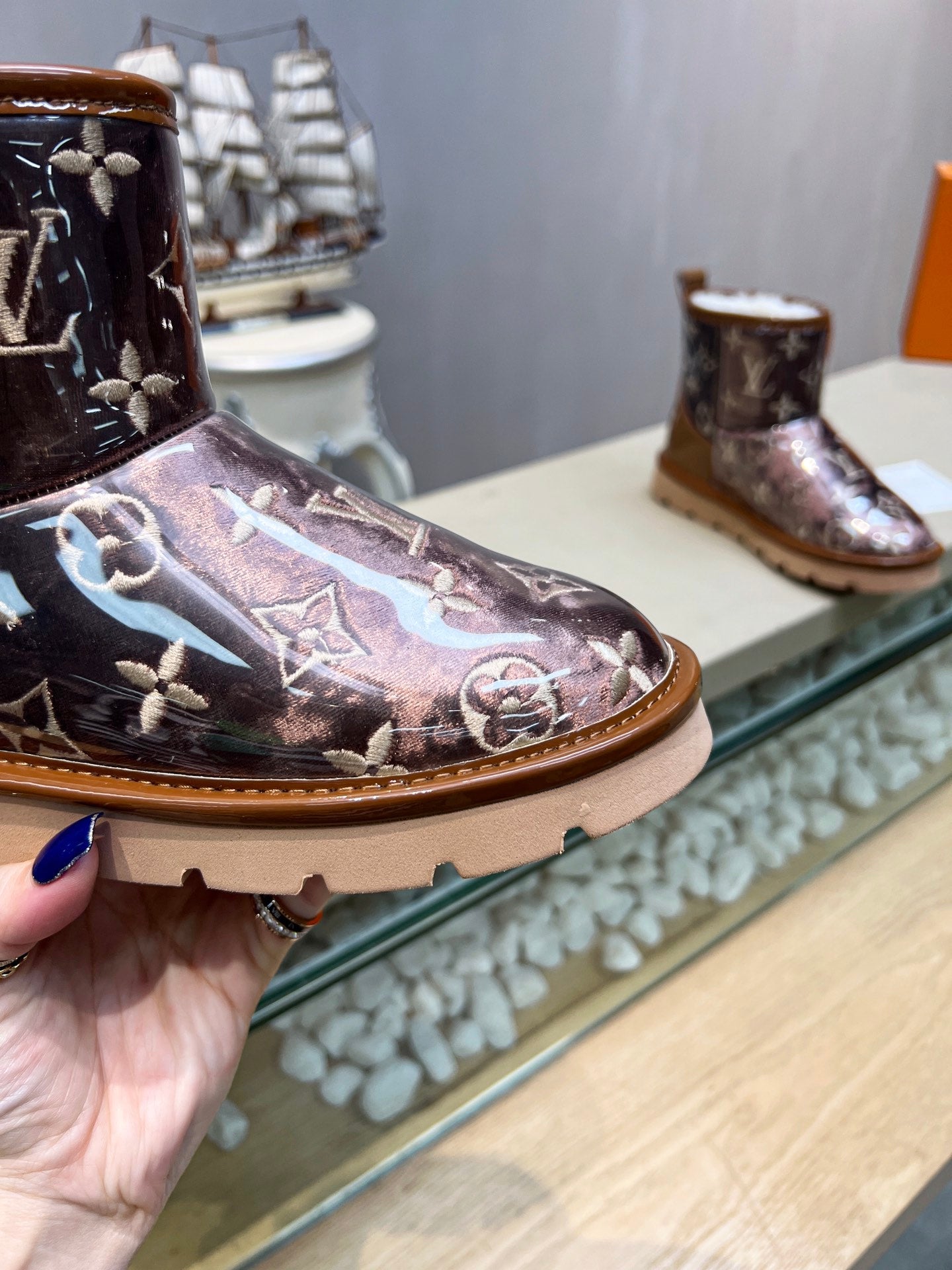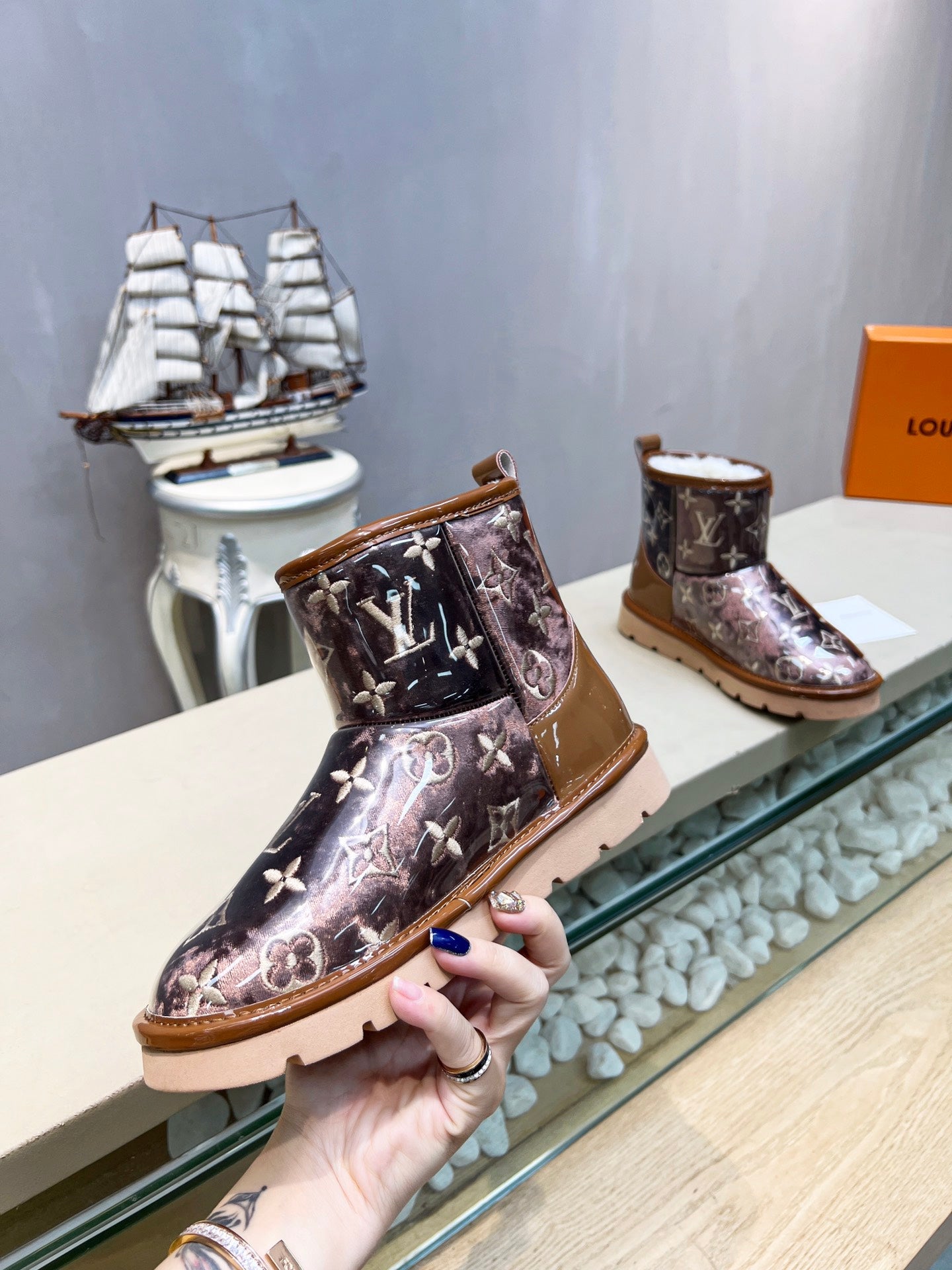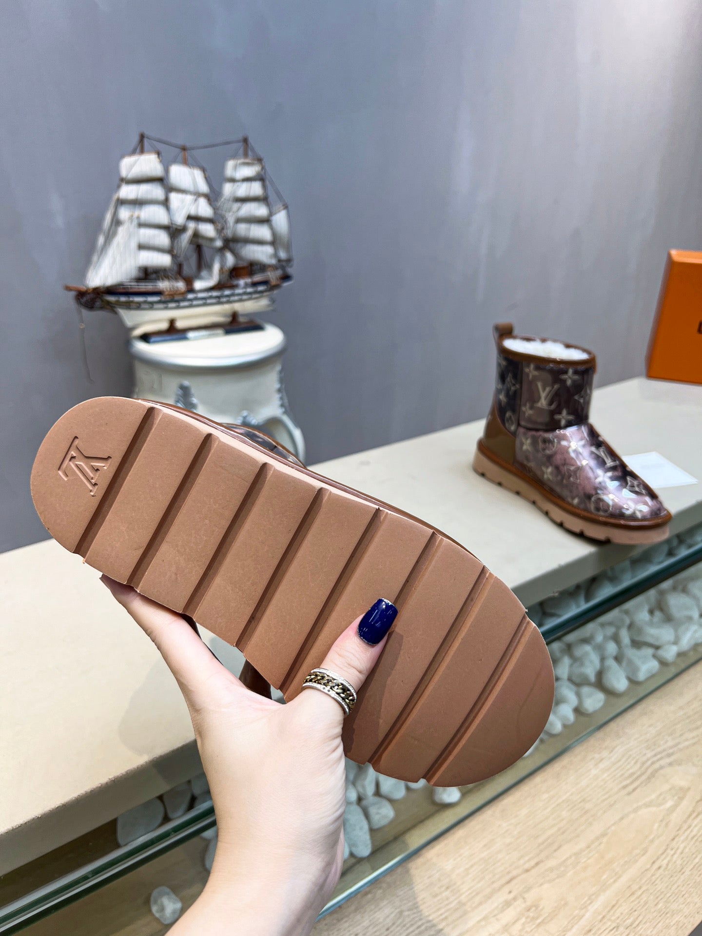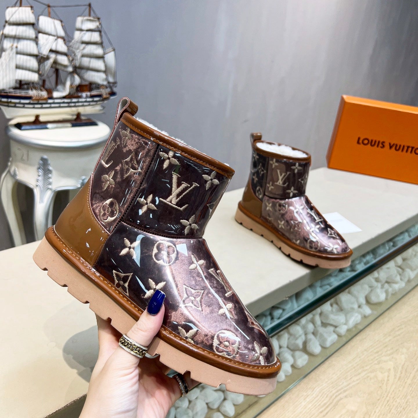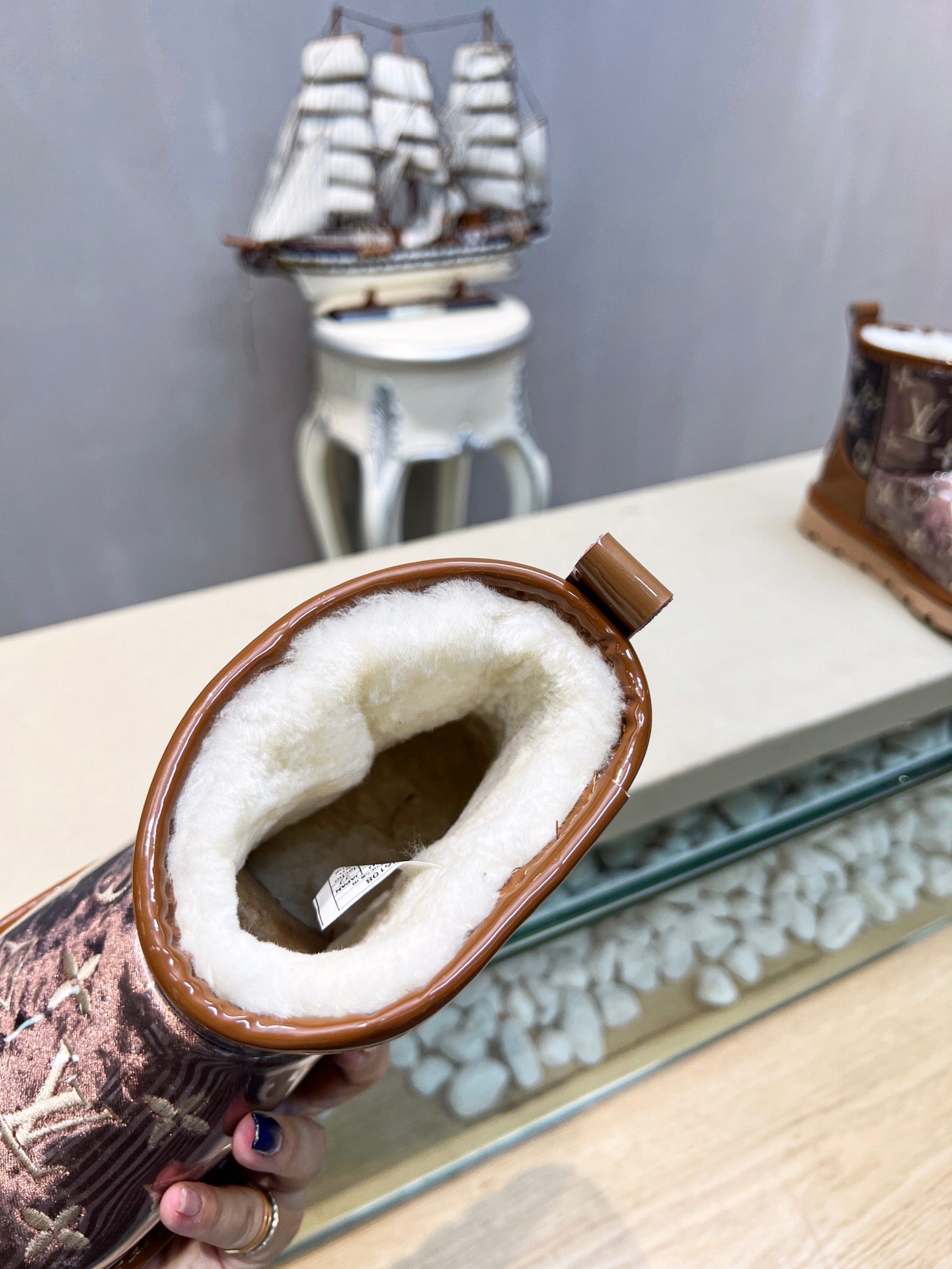 LV 25 Snow Boots Red Brown Scratch-Resistant PVC Wool 576228