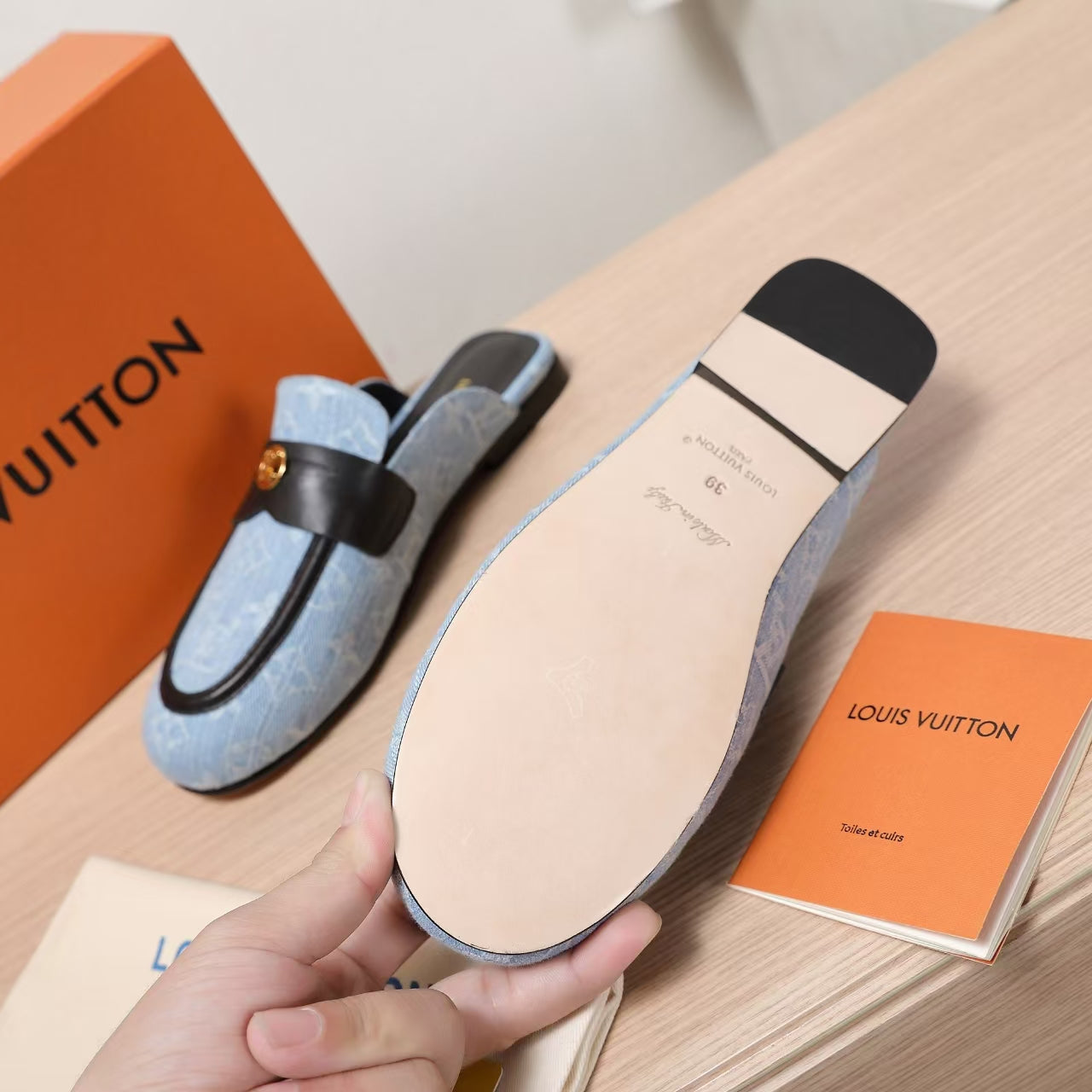 LV 25C Flat Mule Blue Pastel Monogram Cowhide 218316