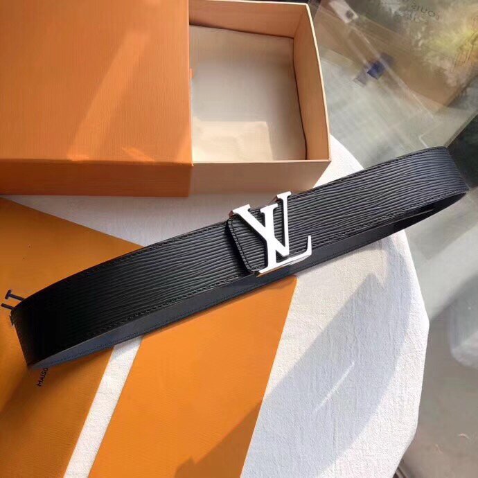 LV BELT SILVER BUCKLE BLACK EPI LEATHER 40MM