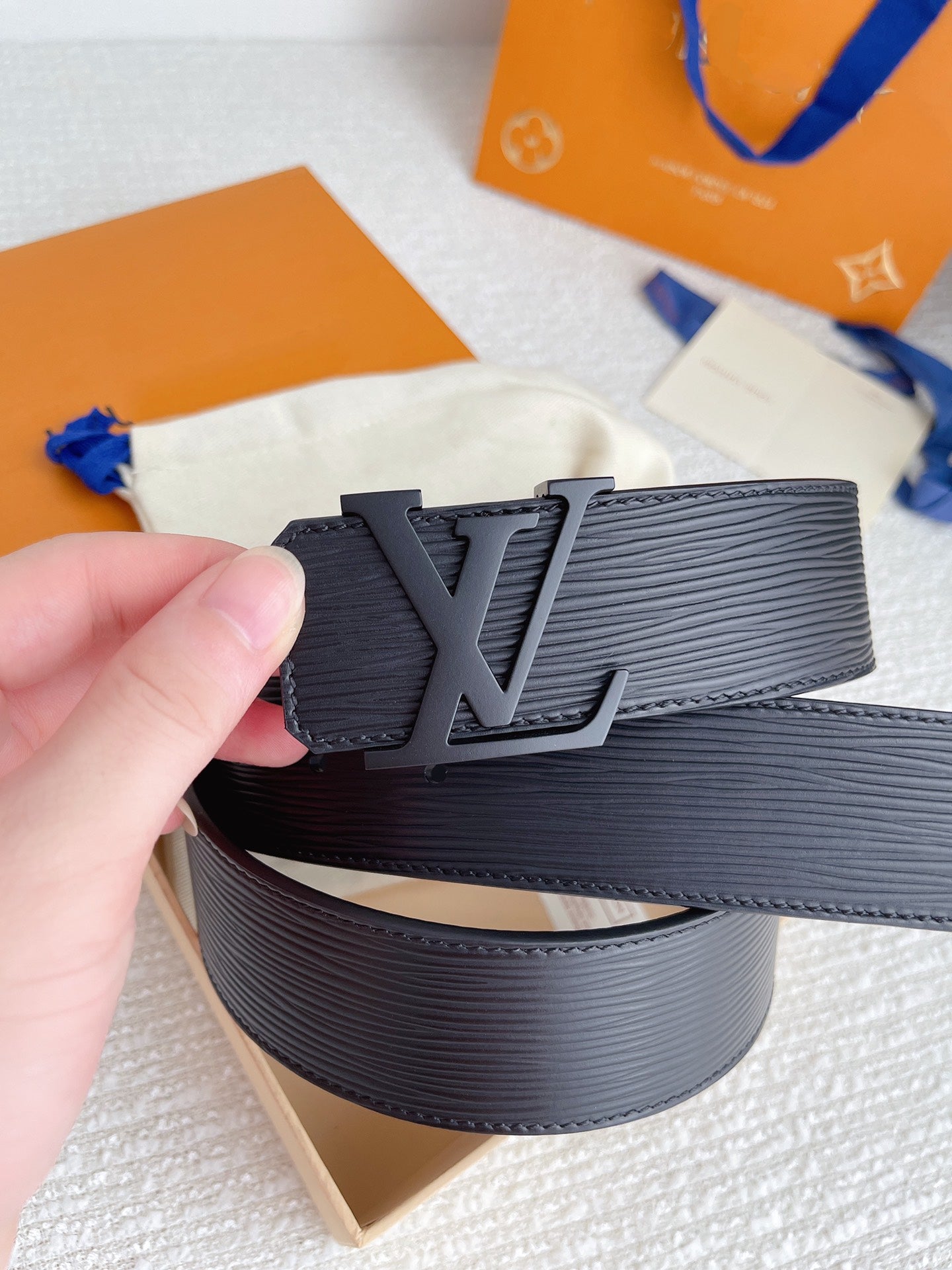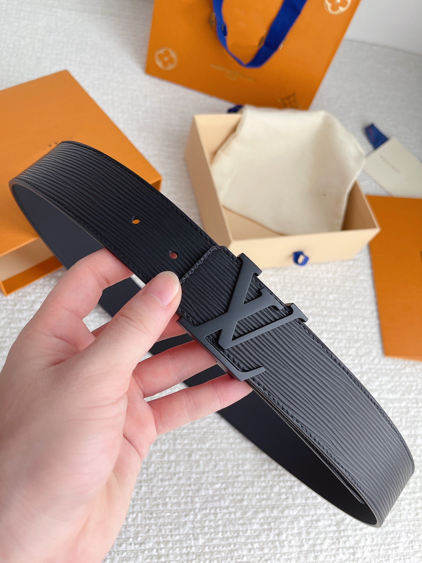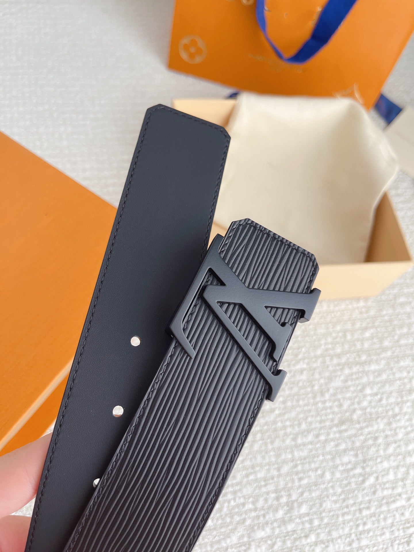 LV BELT BLACK BUCKLE BLACK EPI LEATHER 40MM