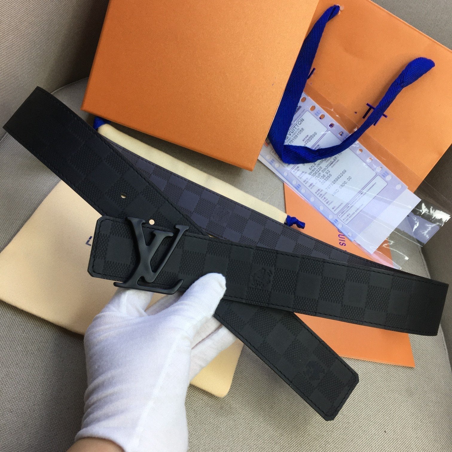 LV BELT BLACK BUCKLE SQUARE LEATHER 40MM