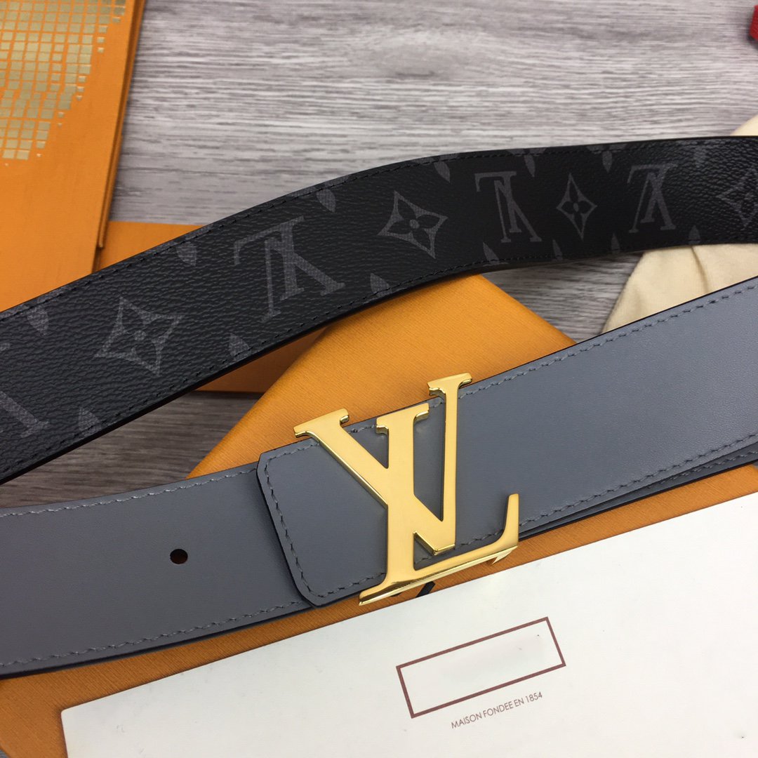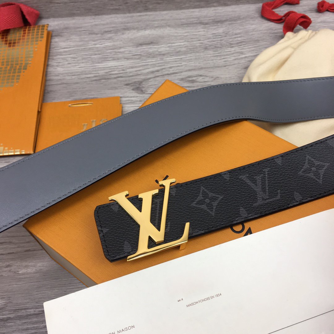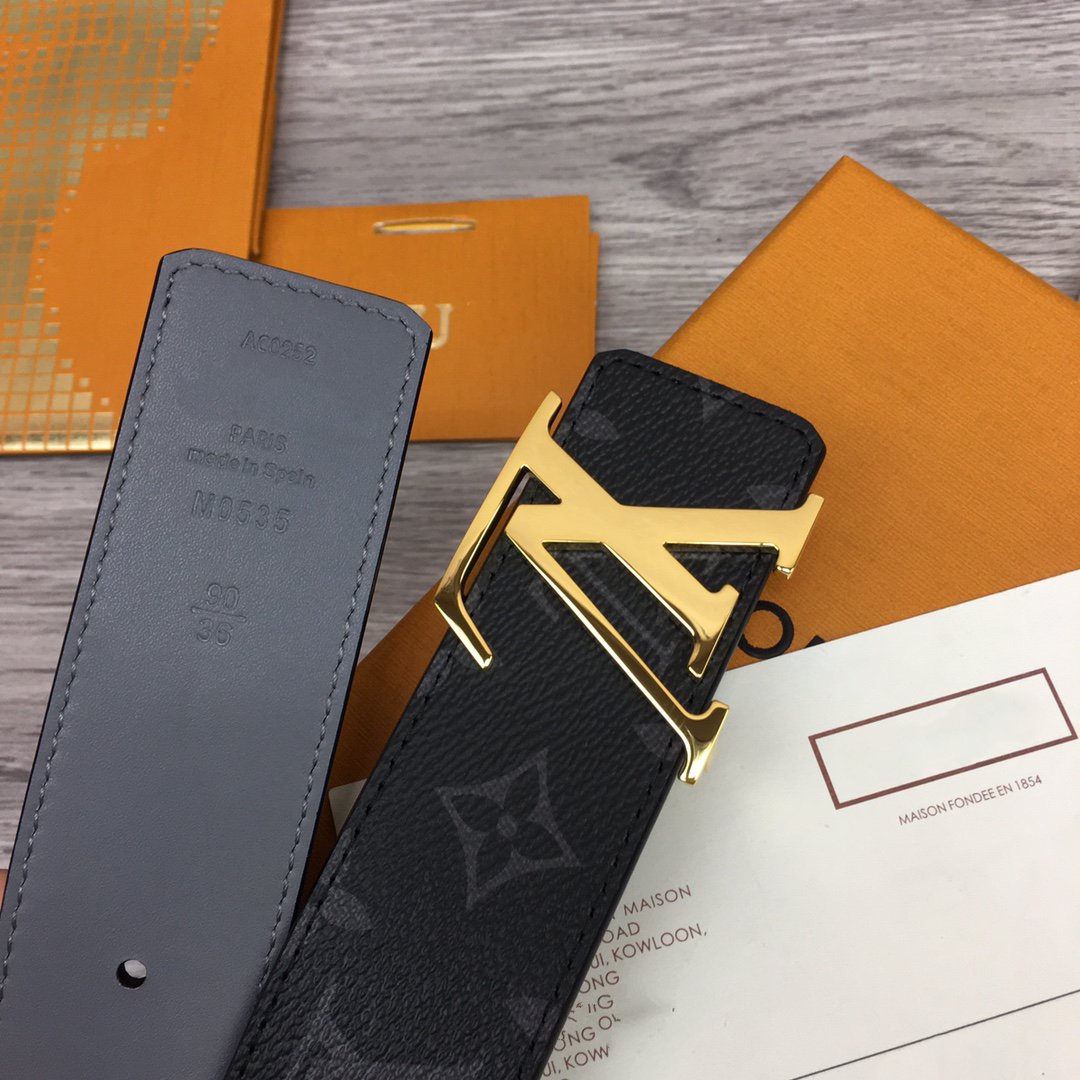 LV BELT GOLD BUCKLE BLACK FABRIC LEATHER 40MM