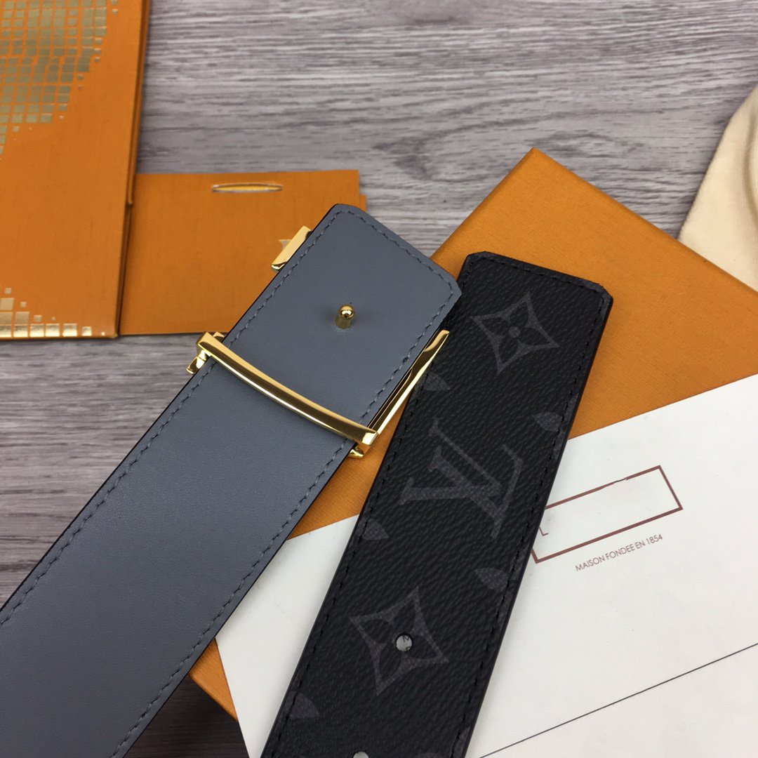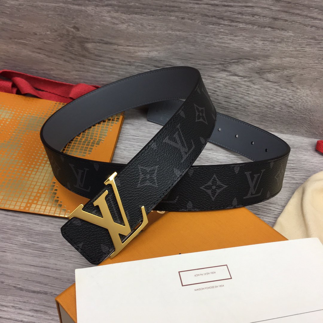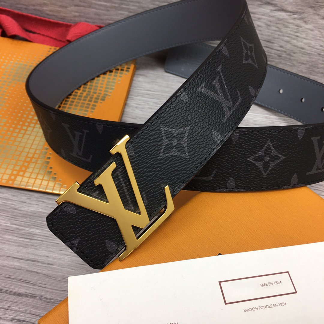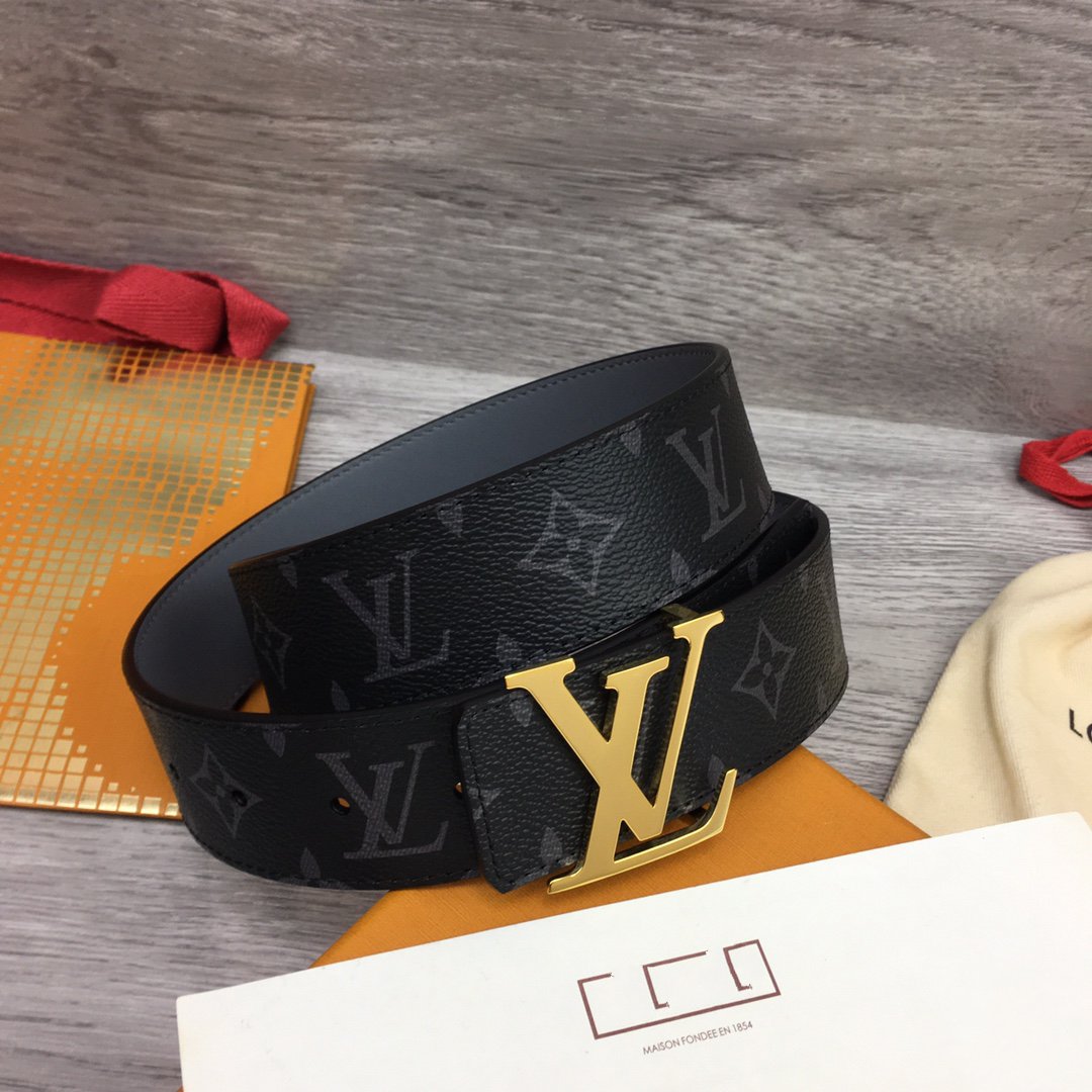 LV BELT GOLD BUCKLE BLACK FABRIC LEATHER 40MM