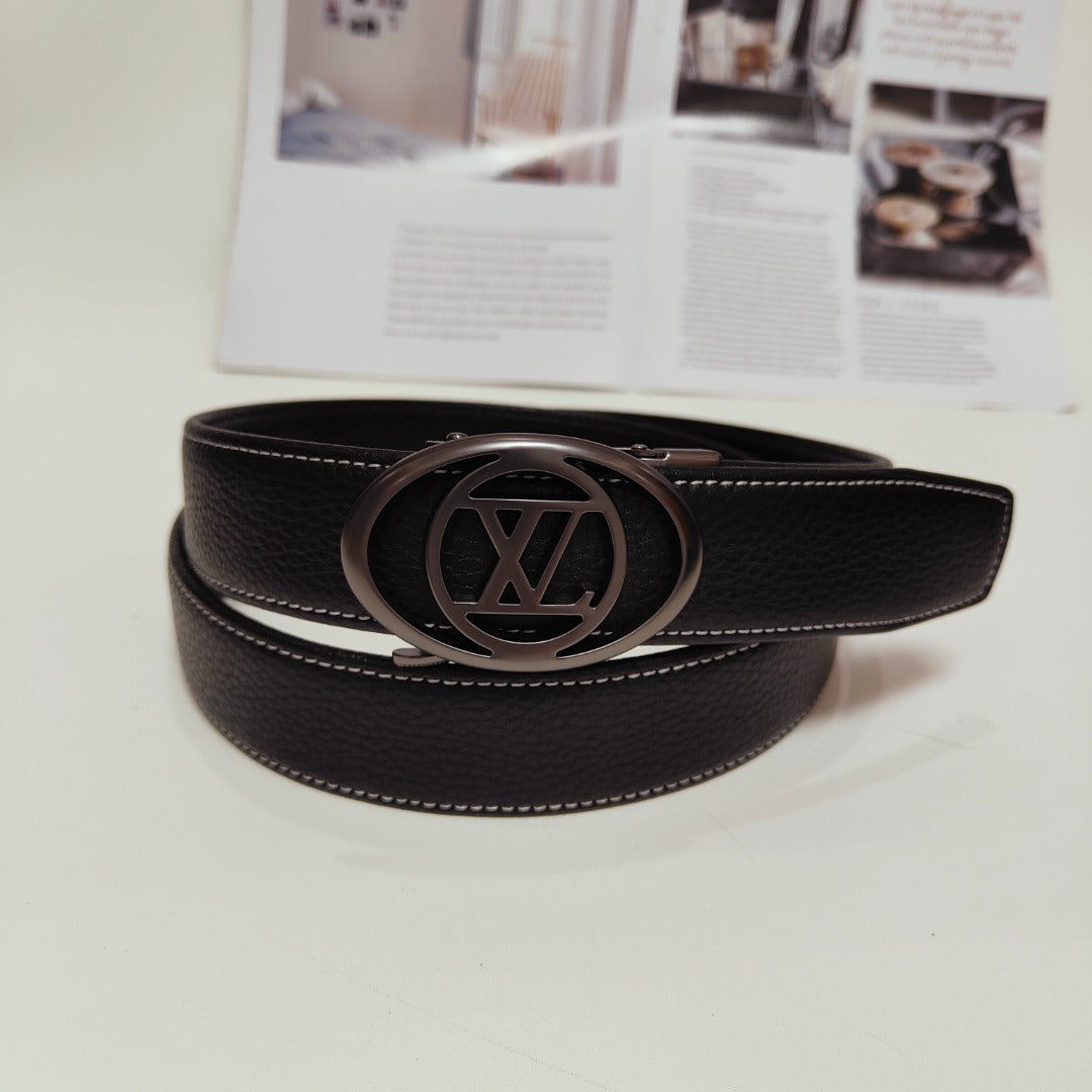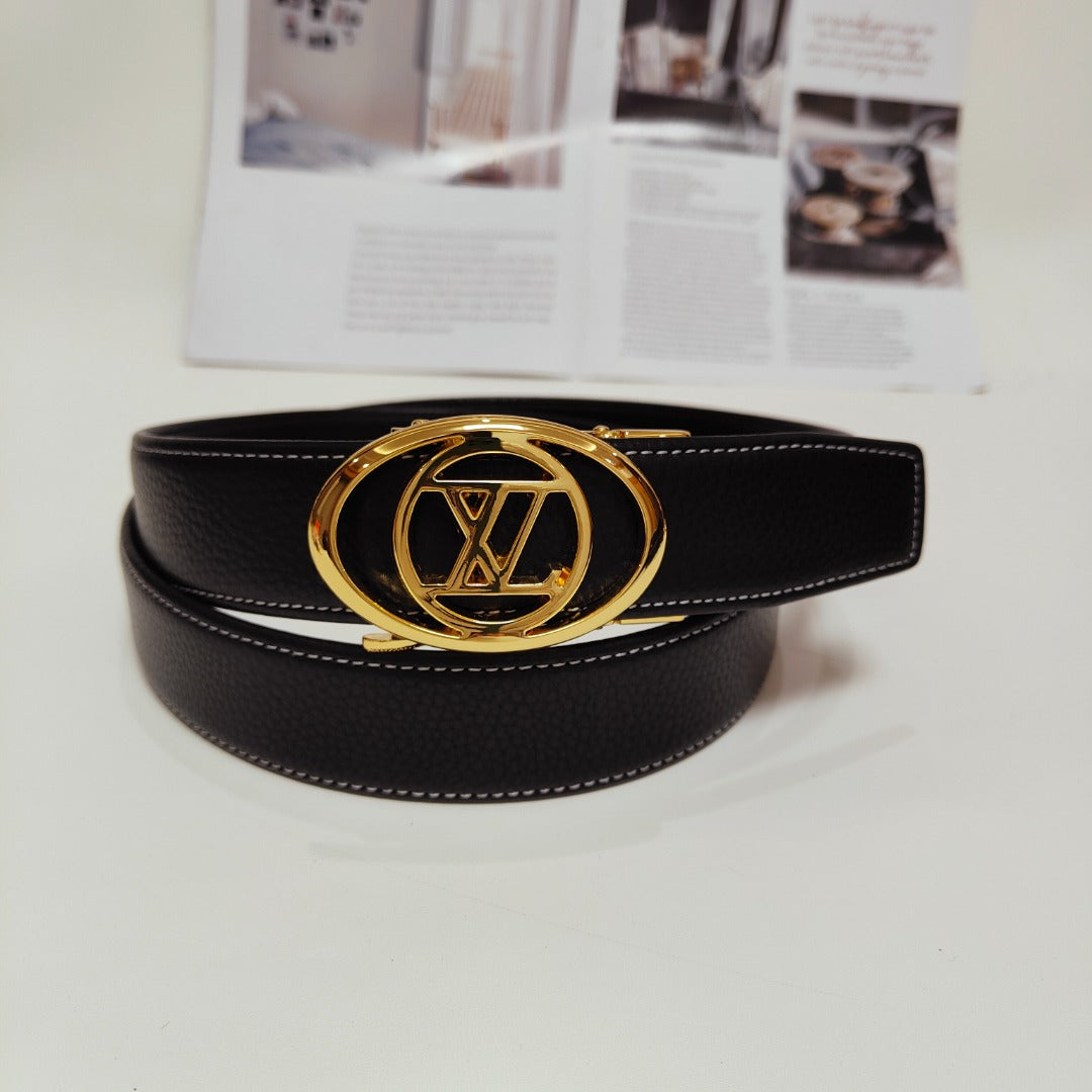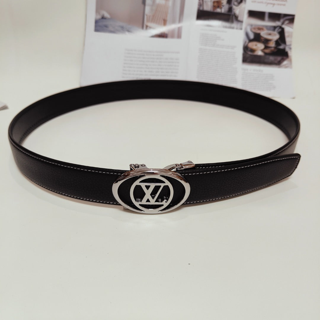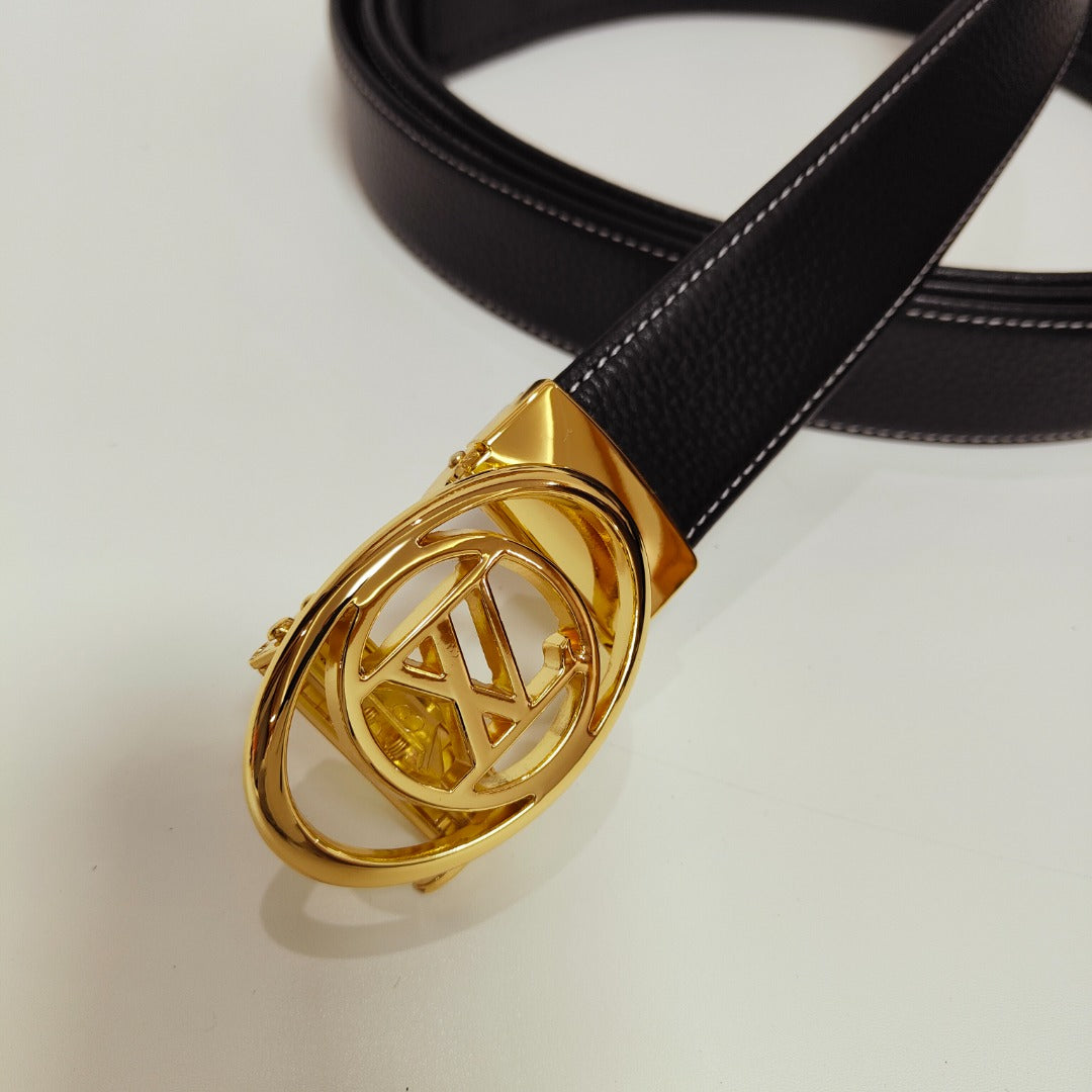 LV BELT ROUND FACE BUCKLE BLACK LEATHER 35MM