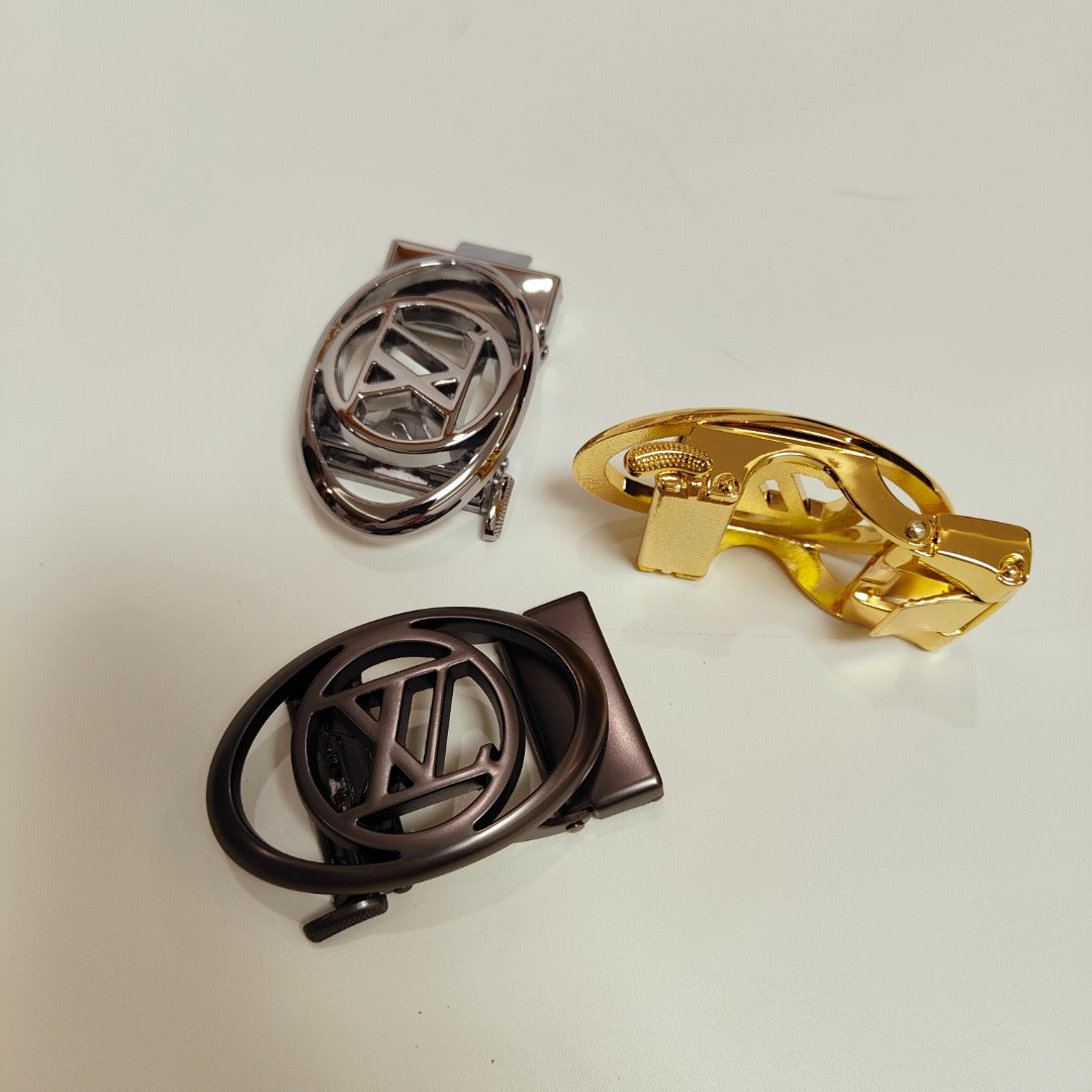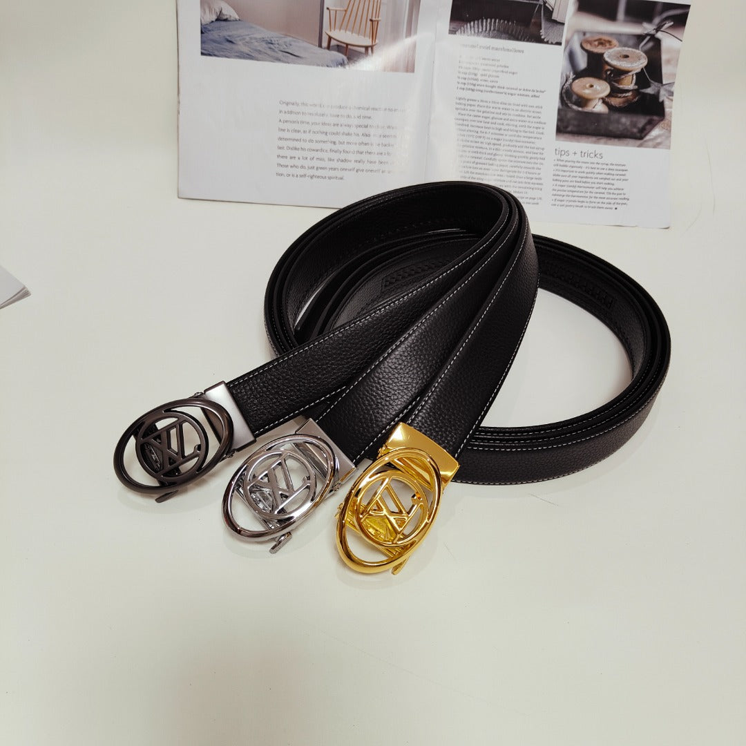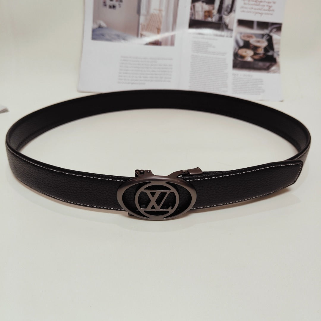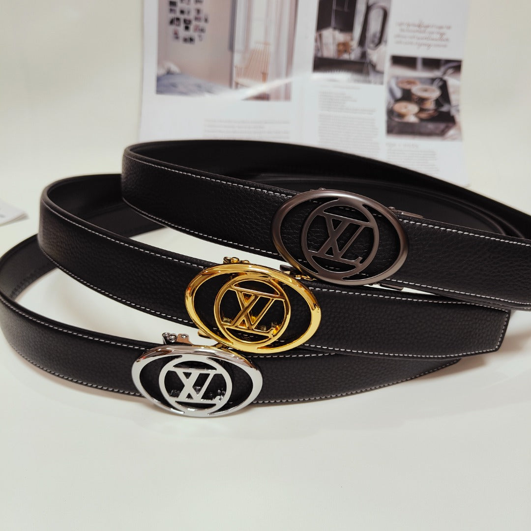 LV BELT ROUND FACE BUCKLE BLACK LEATHER 35MM