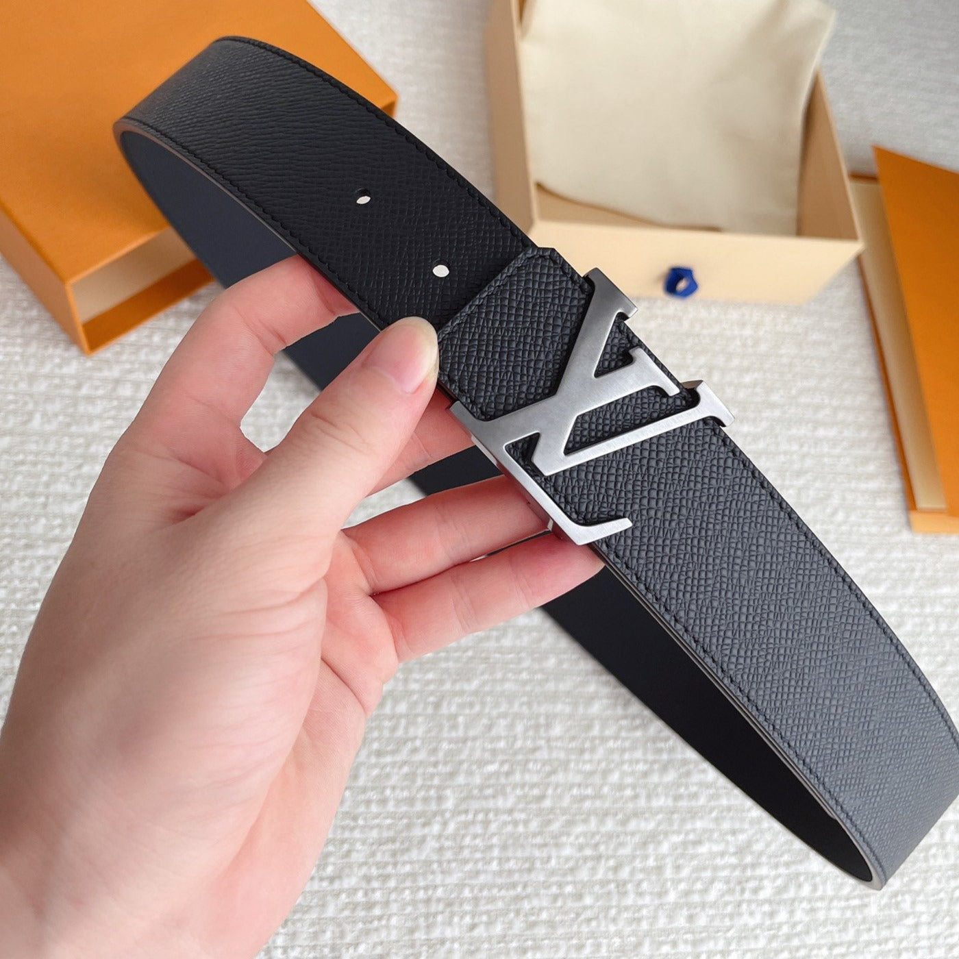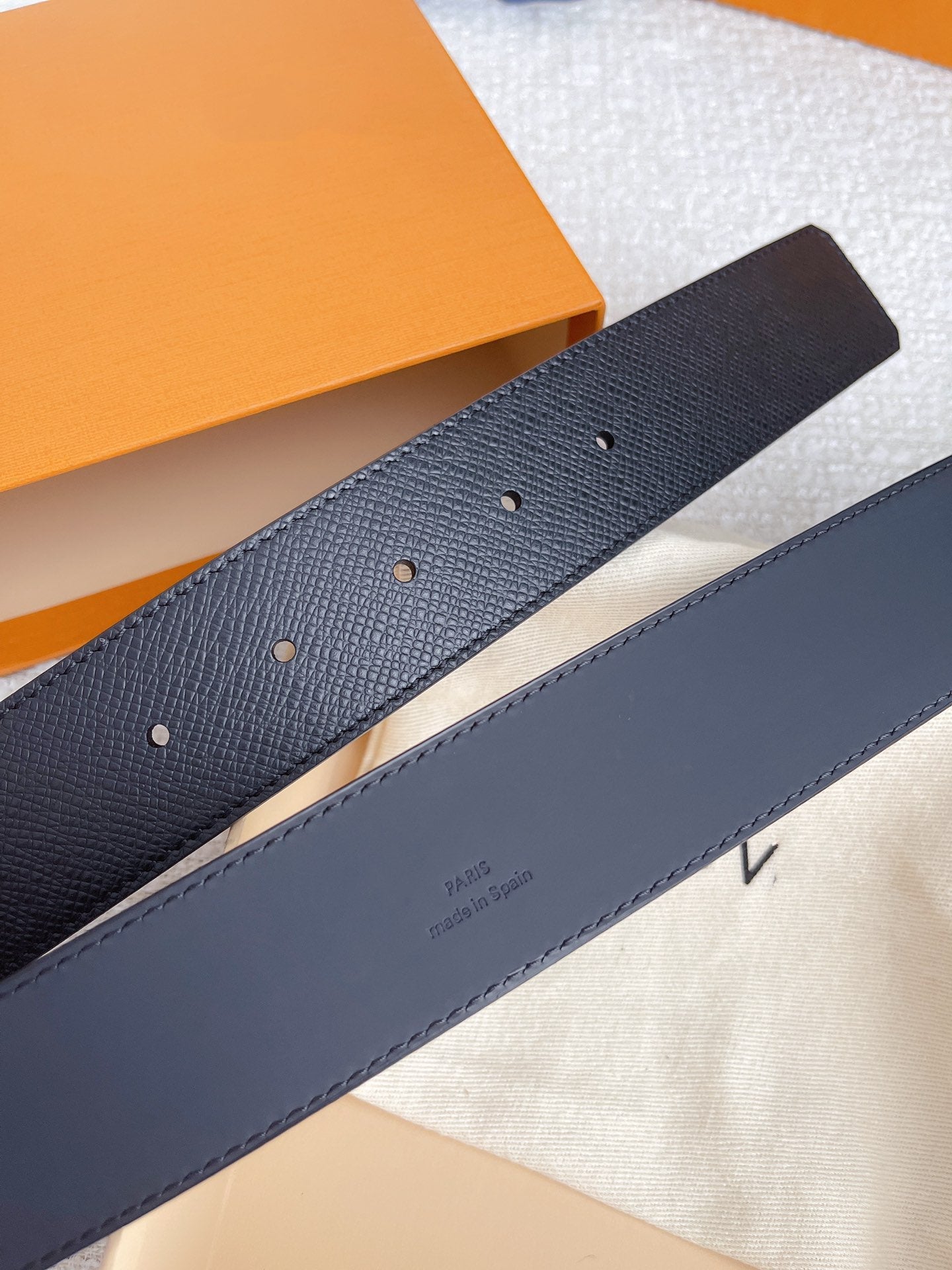 LV BELT SILVER BUCKLE BLACK WRINKLED LEATHER 40MM
