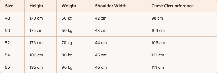 • Size: 48-56