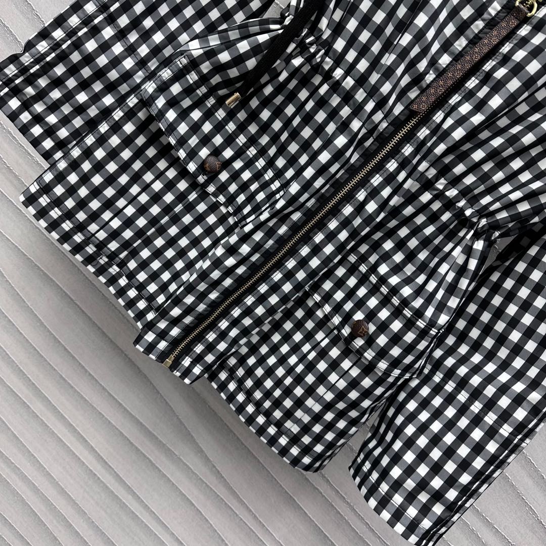 Lv Check Hooded Black White Parka 224851