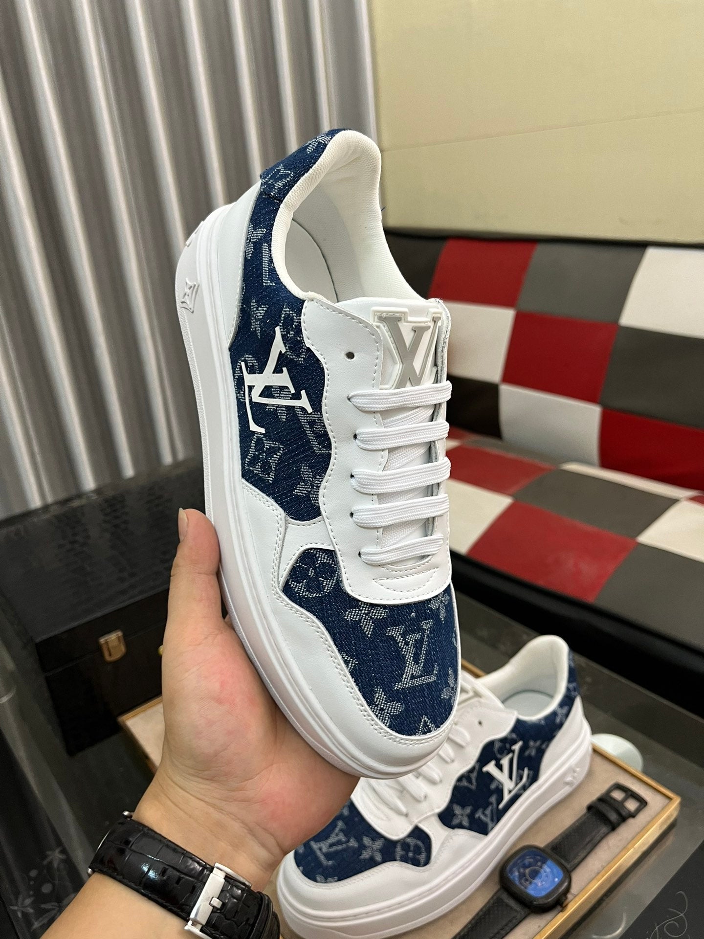 LV CLASSIC TRAINERS NAVY BLUE DENIM MIX WHITE CALFSKIN