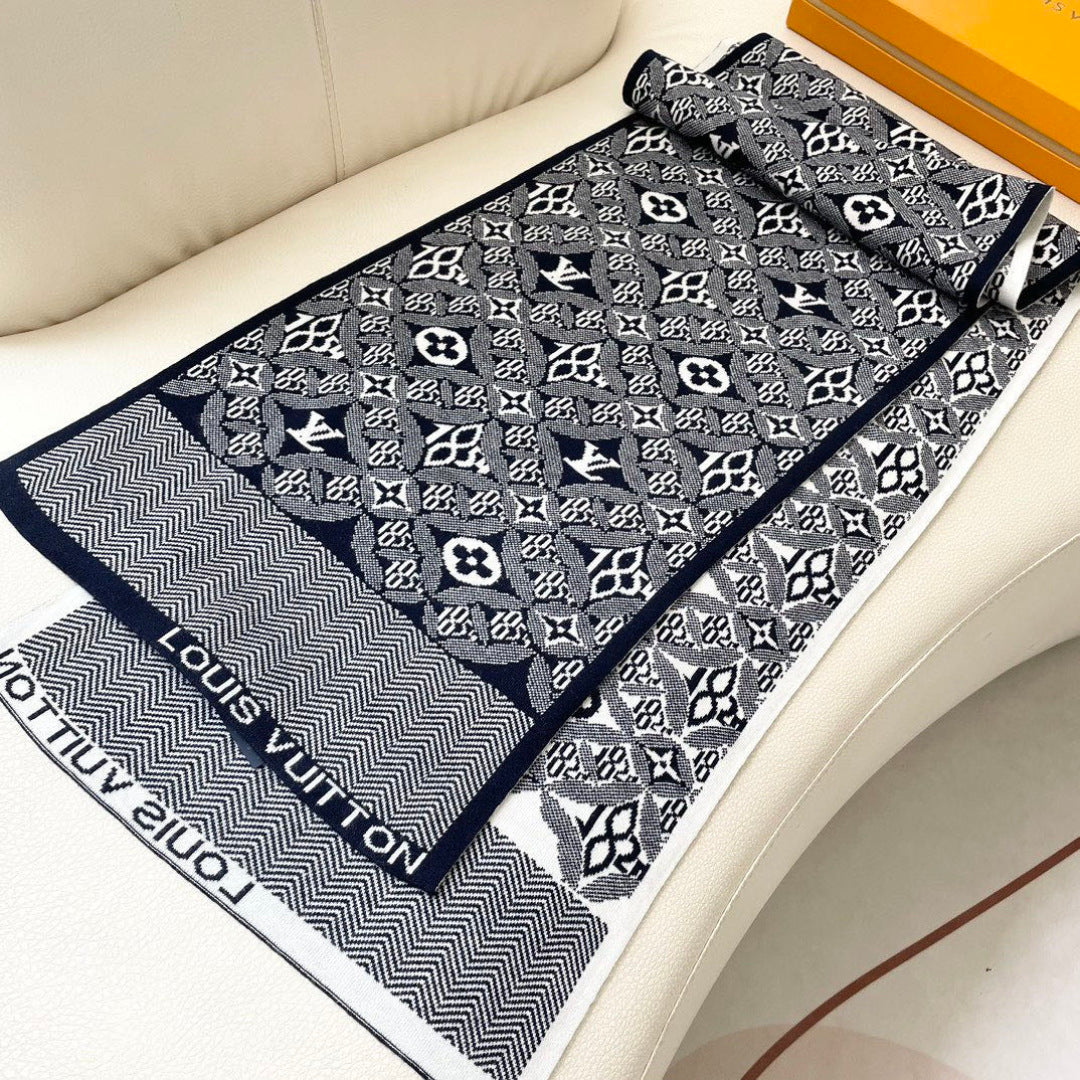 LV Couple's Style Scarf 180cm Navy Blue White Cashmere 969313