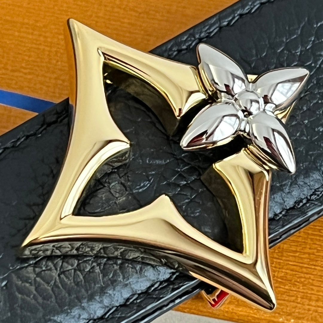 LV Flowergram 30mm Reversible Belt Black Brown Empreinte Calfskin