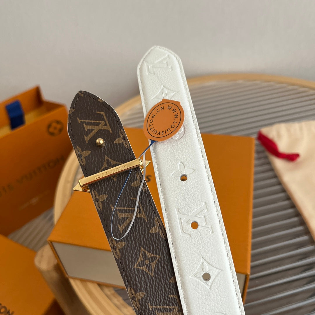 LV Flowergram 30mm Reversible Belt White Brown Empreinte Calfskin