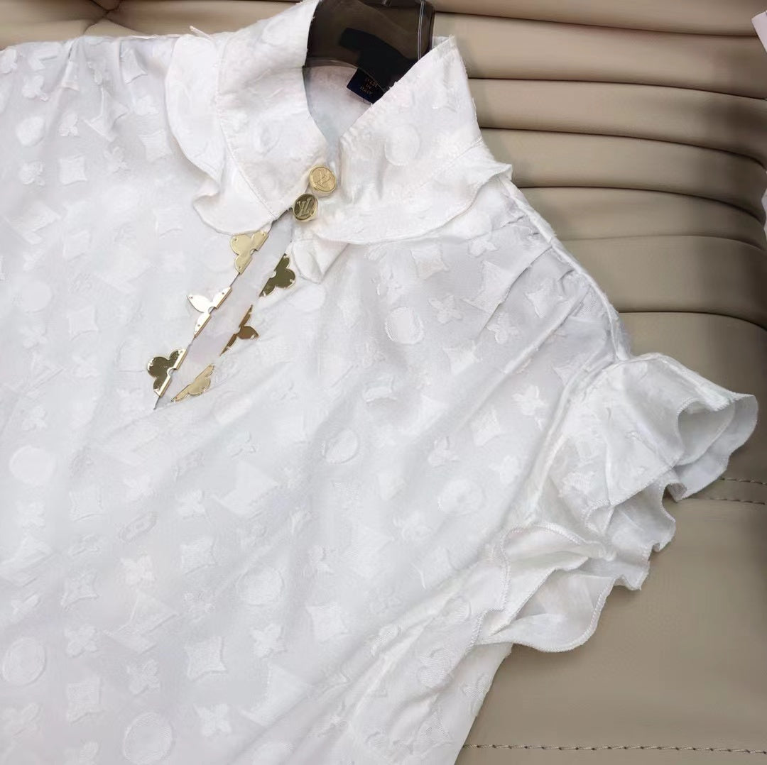 LV Frill Blouse White Cotton