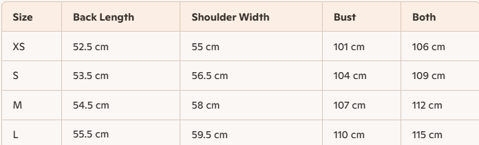- Size: XS, S, M, L