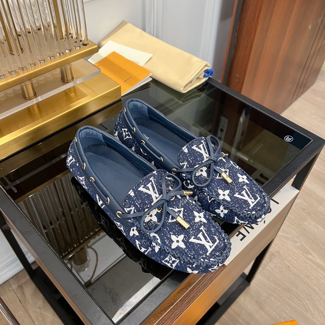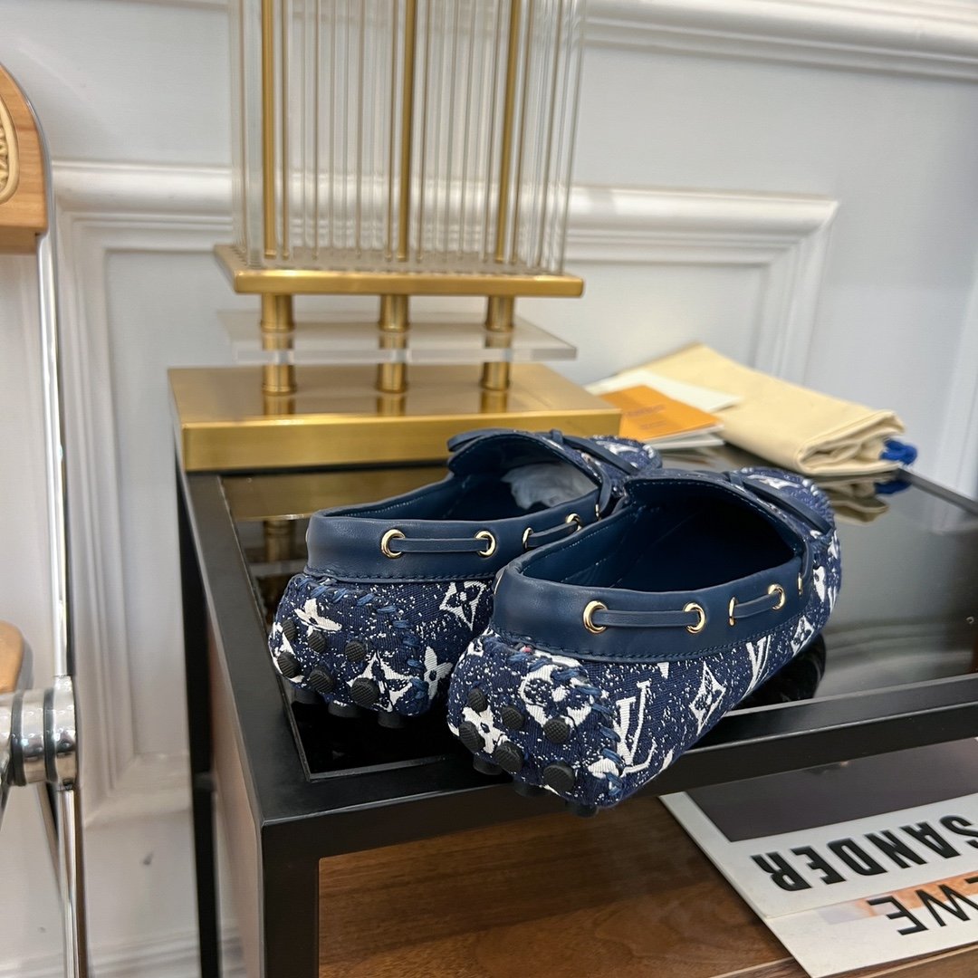 LV GLORIA FLAT LOAFER DENIM FLORAL FABRIC DARK BLUE