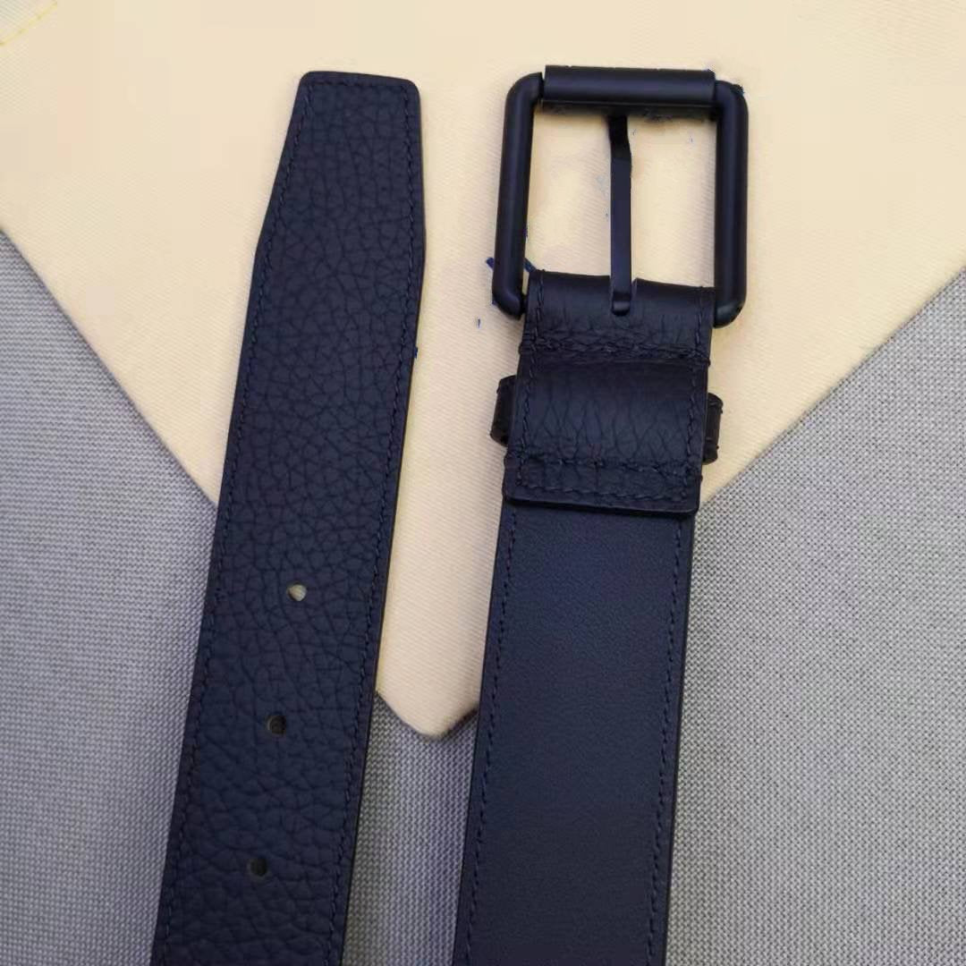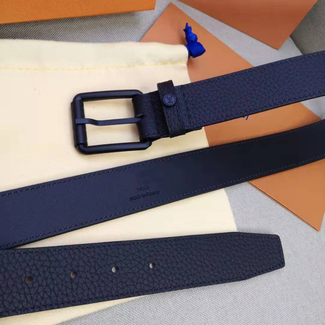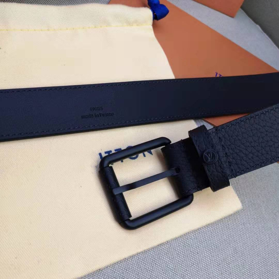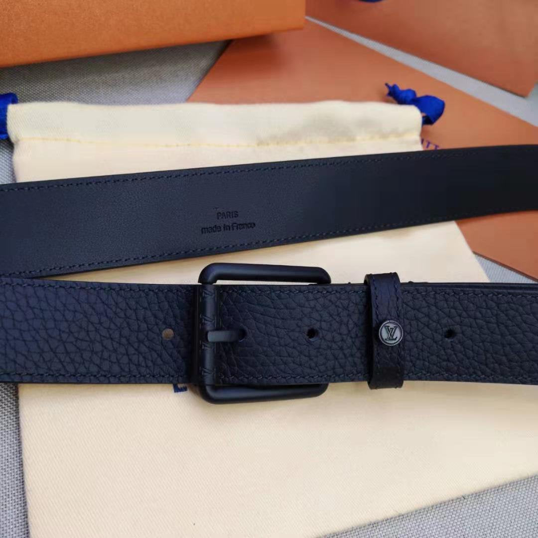 LV MEN'S BELT SQUARE BUCKLE INSTALL BLACK LEATHER 35MM