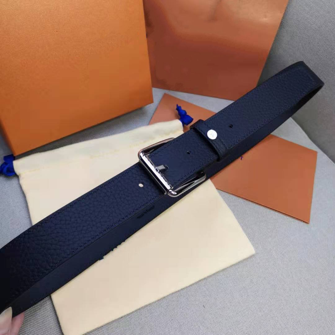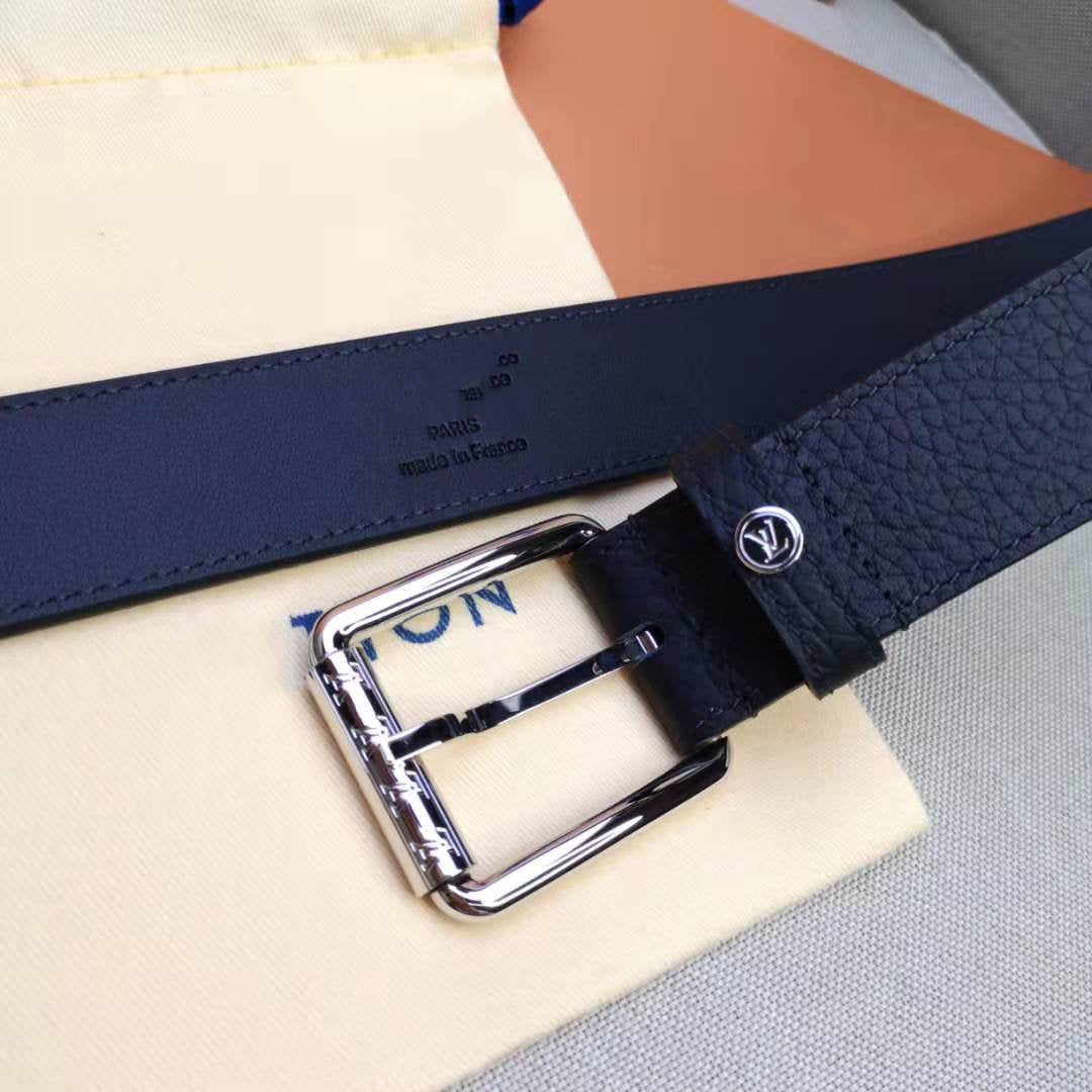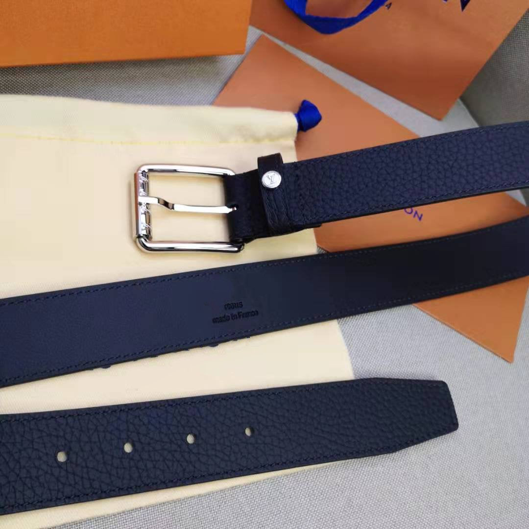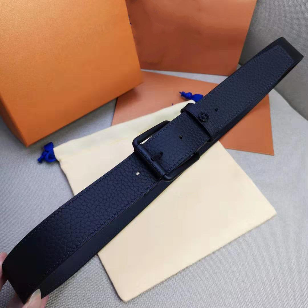 LV MEN'S BELT SQUARE BUCKLE INSTALL BLACK LEATHER 35MM