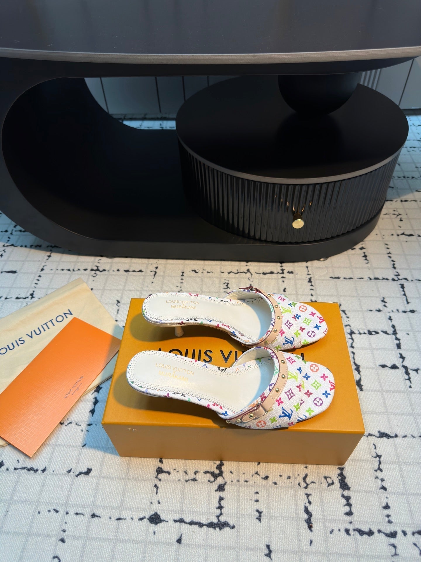 LV Mule 6AM LV x TM 55mm White with Monogram Multicolore Leather 218907