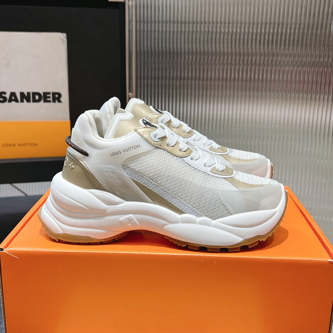 LV Run 55 Sneaker 50mm White Gold Polyester Mesh Fabric