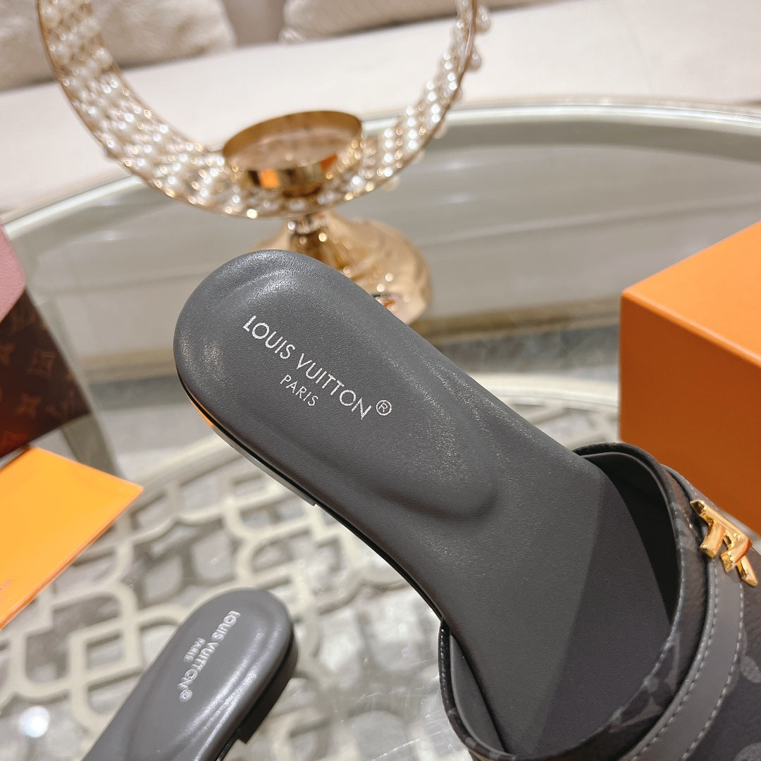 lv sandal isola flat mule black monogram calfskin