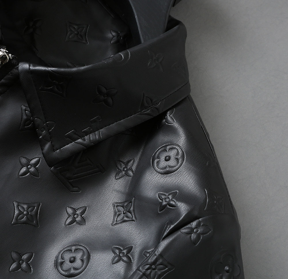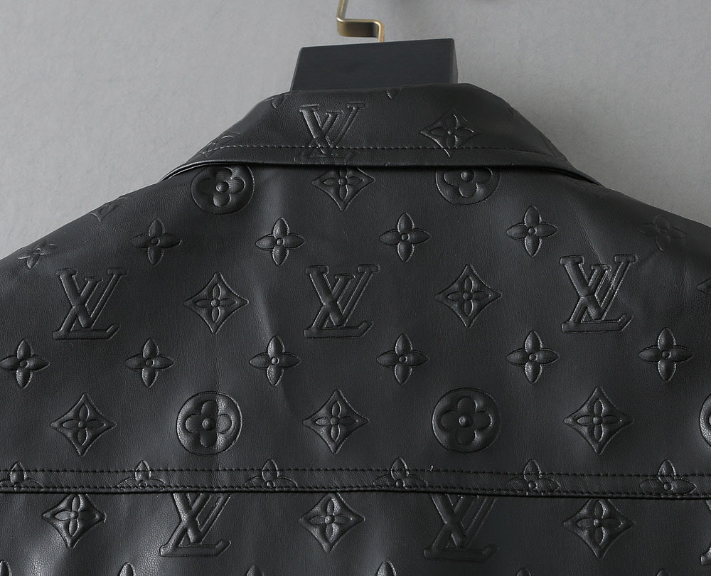 LV SHIRT JACKET IN BLACK CALFSKIN EMBOSSED LOGO 238988
