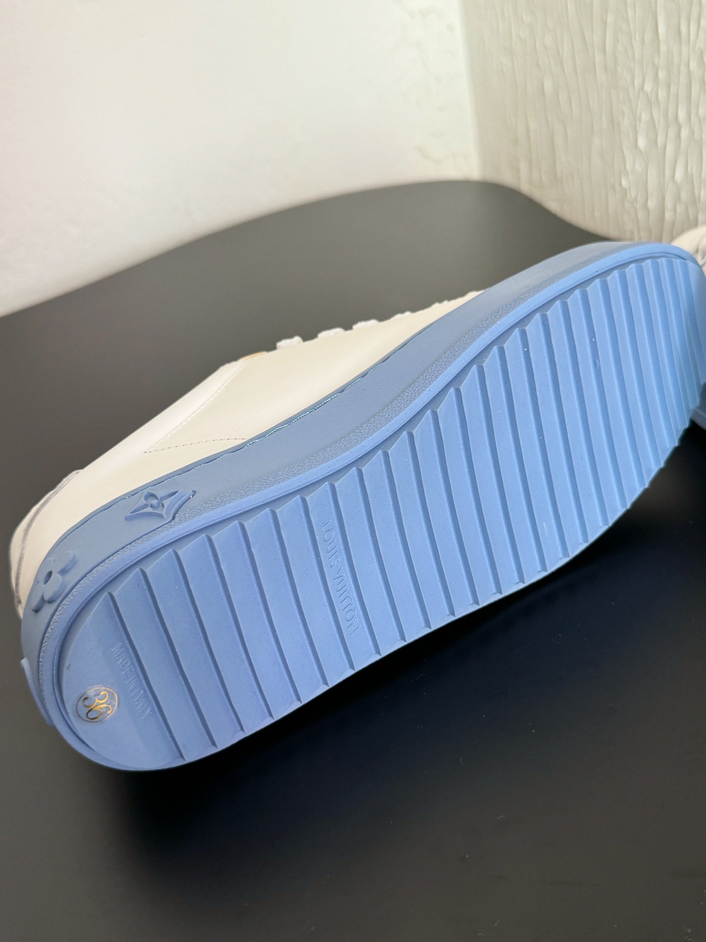 LV Sneakers Time Out Logo Print White Mix Light Blue Calfskin