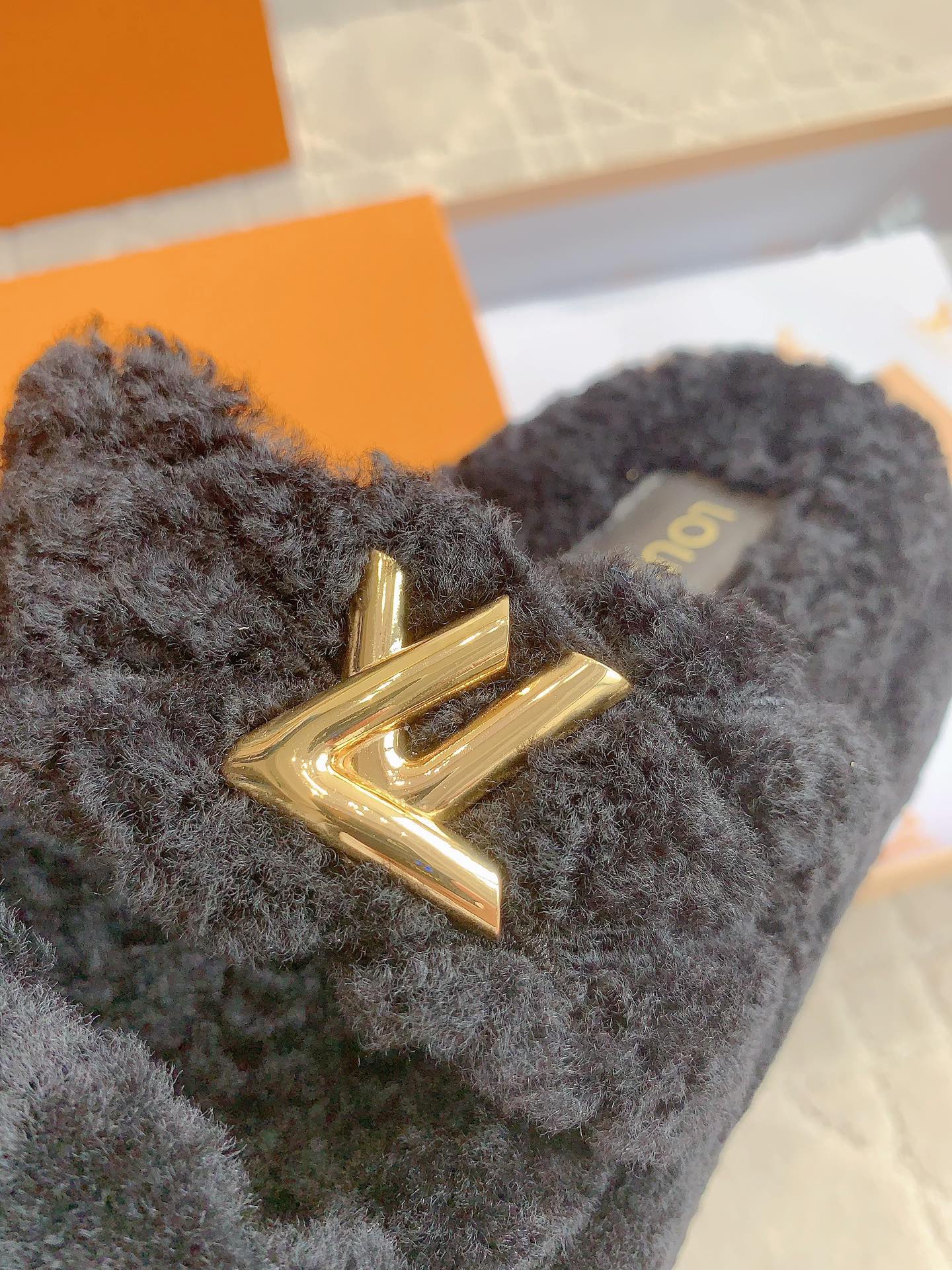 LV Sunset Platform Comfort Mule Black Gray Wool